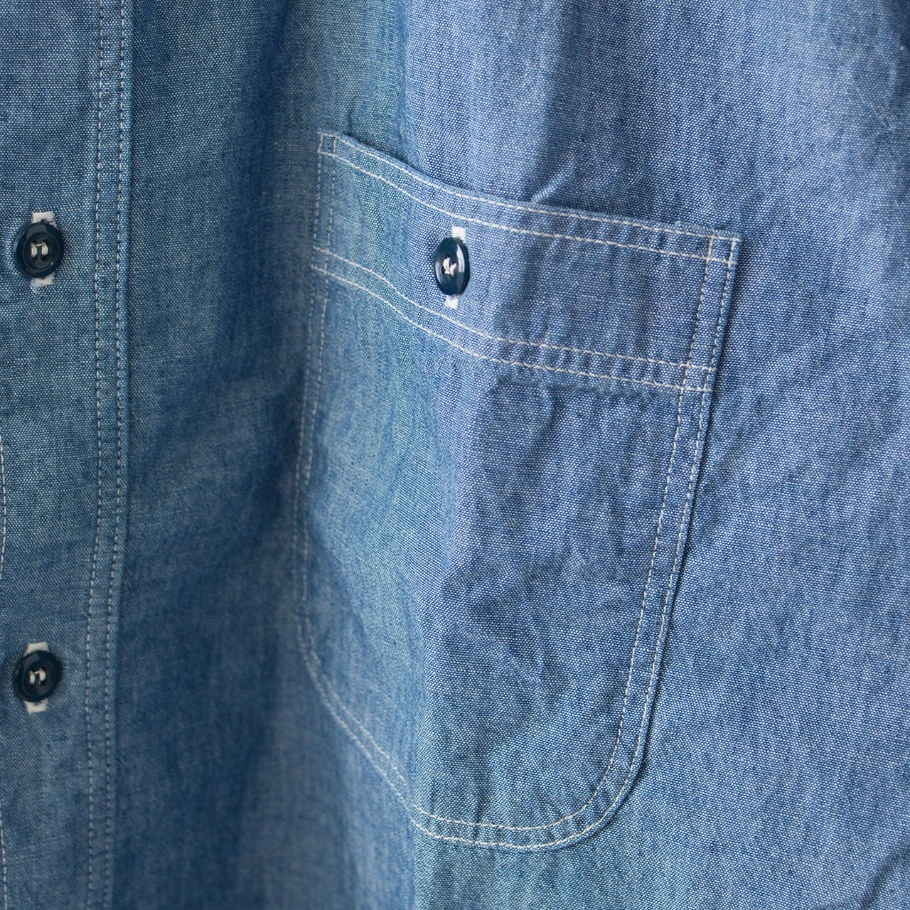 素材、襟型、縫製仕様、付属等をVINTAGEのシャンブレーシャツに限りなく近づけました。