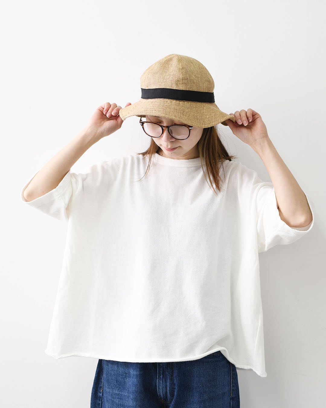 程よい広さのブリムは、日差しをやわらかく遮りながらも大きすぎず、スタイリングのバランスを崩さない絶妙なサイズ感。