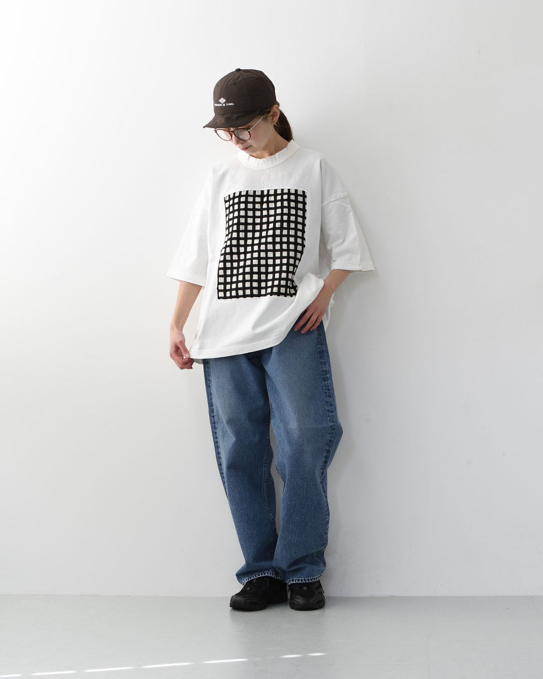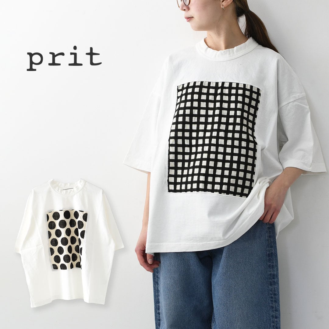 prit [プリット] 17/1空紡天竺×10/1ムラ糸プリント5分袖フレームTシャツ [P91638] プリントTシャツ・5分袖・オーバーサイズ・ゆったりサイズ・チェック柄・ドット柄・フレーム柄・ドロップショルダー・LADY'S [2026SS]