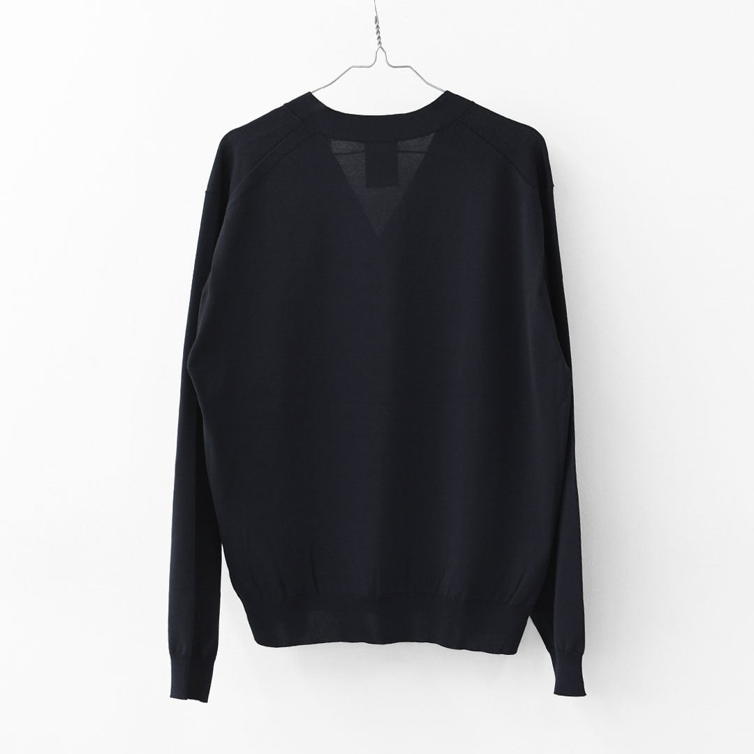 細番手の糸を高密度に編み立てたハイゲージニットは、薄手ながら透けにくく、品のあるクリーンな表情。