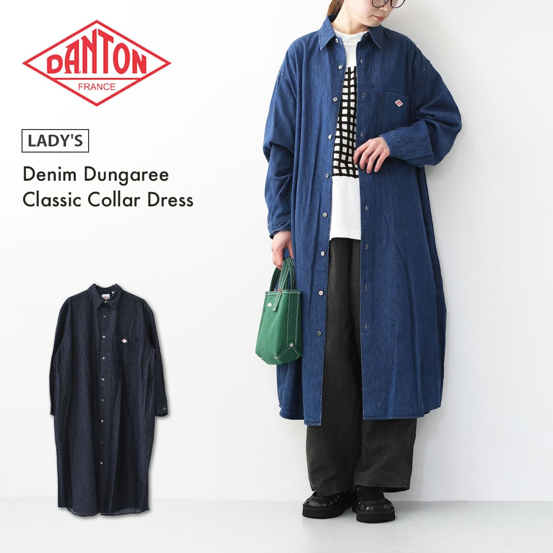 DANTON [ダントン] W Denim Dungaree Classic Collar Dress [DT-G0115DUG] デニムダンガリークラシックカラードレス・シャツワンピース・デニムシャツワンピース・レギュラーカラー・ダンガリー・LADY'S [2026SS]
