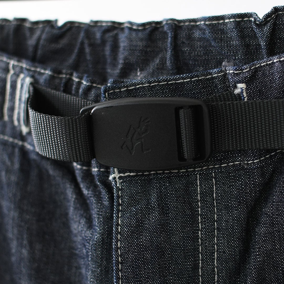 Gramicciのルーツであるクライミング仕様をベースに、岡山産シャンブレーで仕立てたダブルニーパンツです。