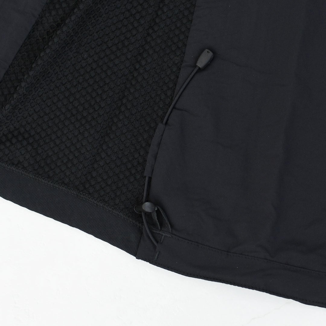通気性と撥水性を備え、ストレッチインサレーションを袖と襟には使用せずボディにのみ使用することで、収納性を高めるとともに、体幹部を集中的に温めます。