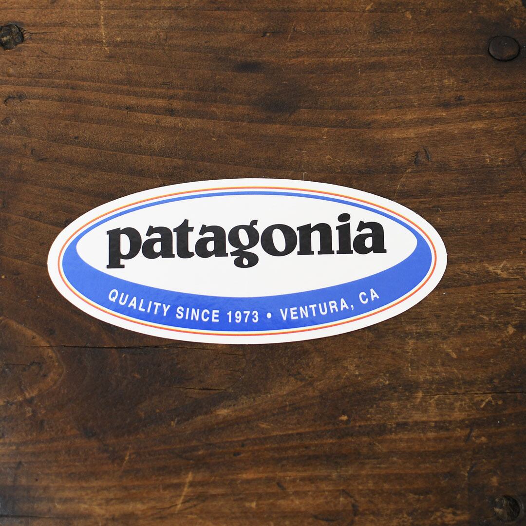 パタゴニアのロゴをあしらったオーバル型のステッカー。