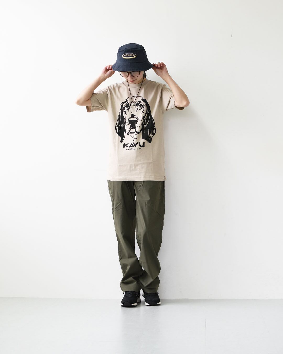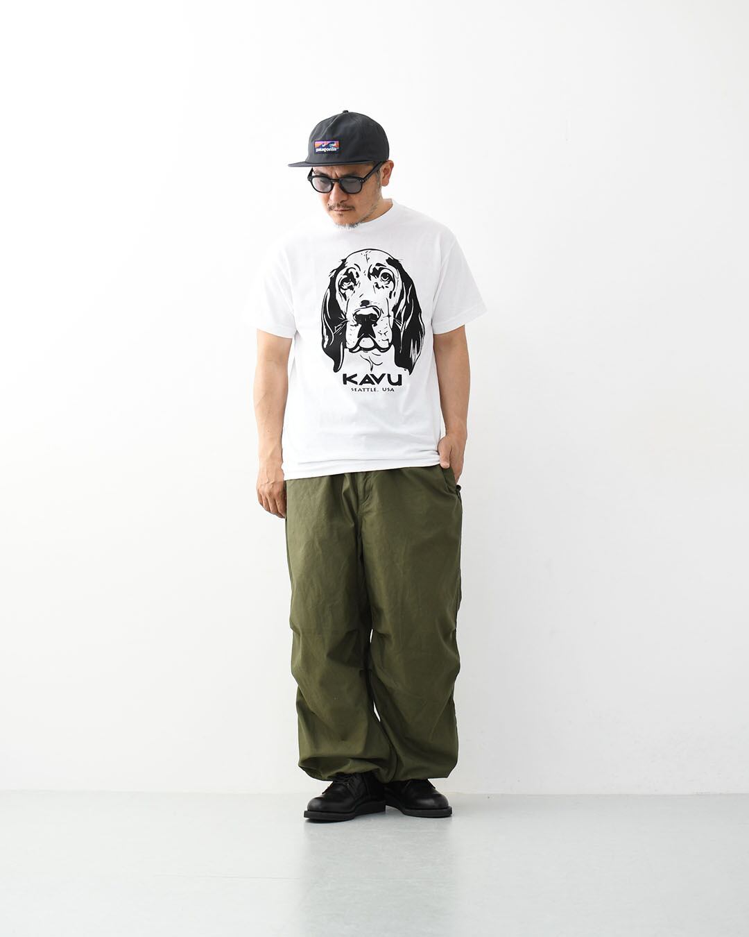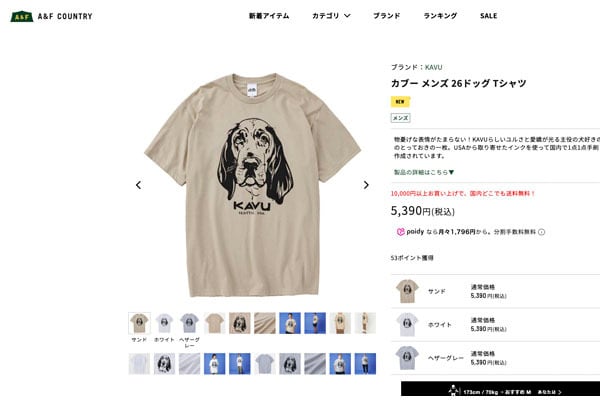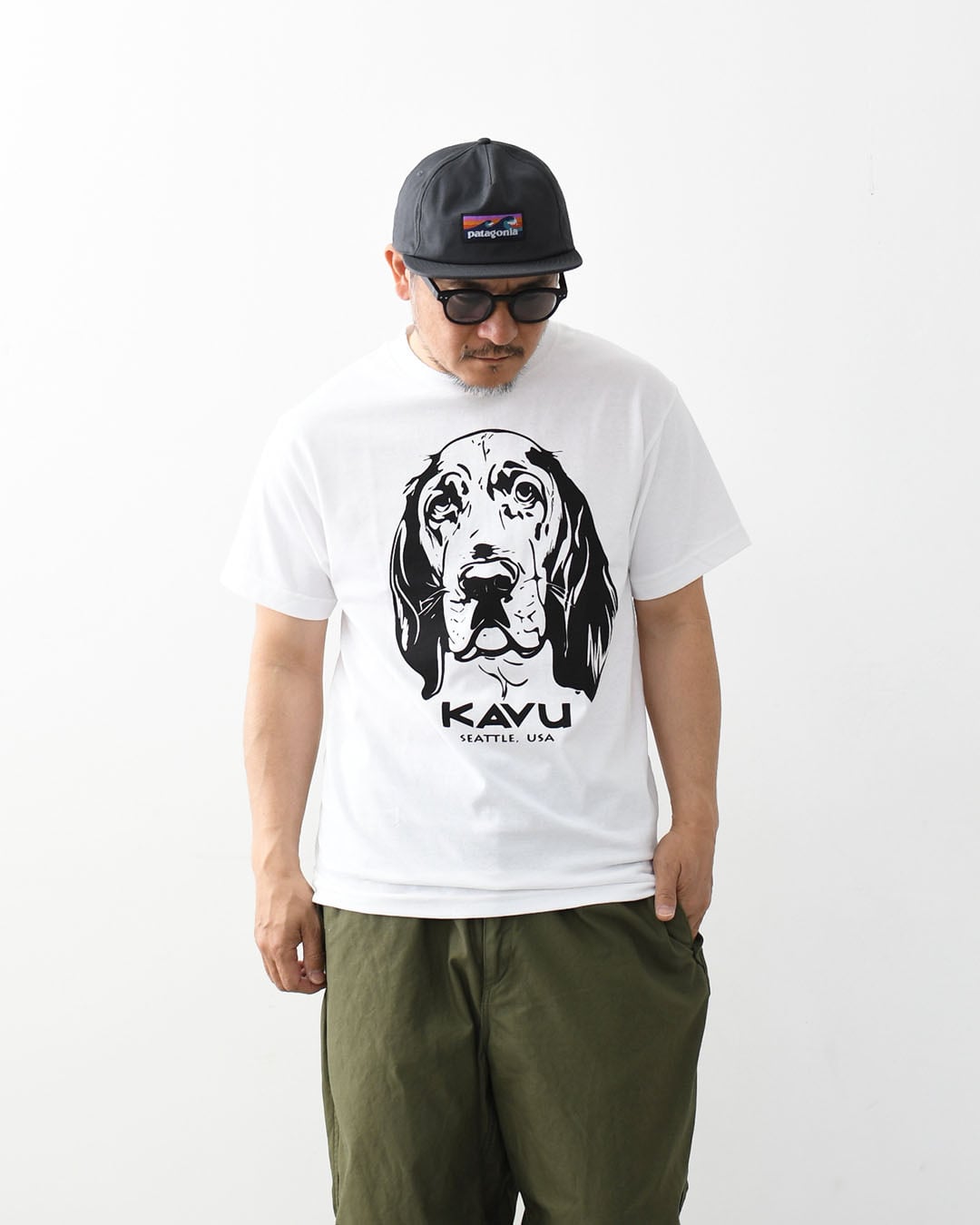 物憂げな表情がたまらない、KAVUらしいユルさと愛嬌が光るドッグTシャツ。