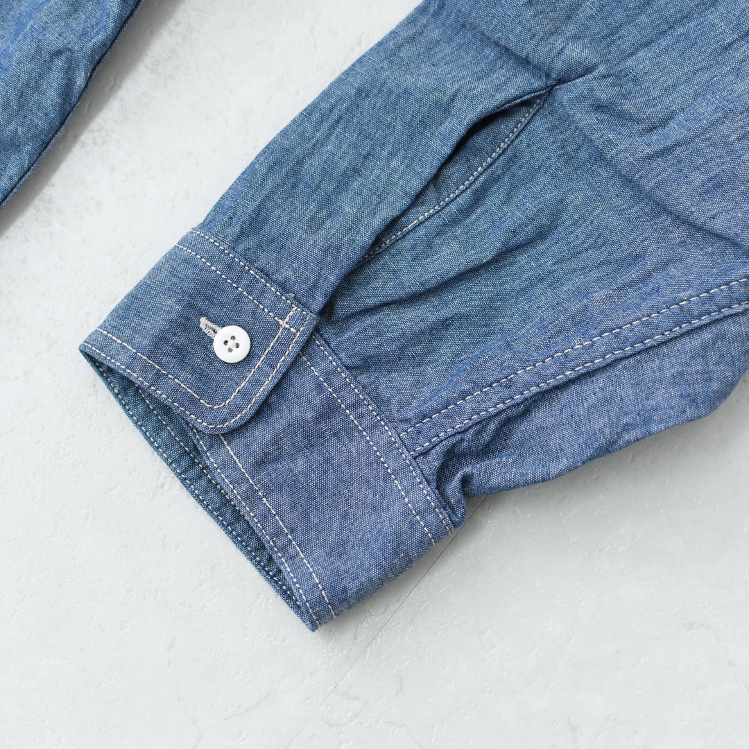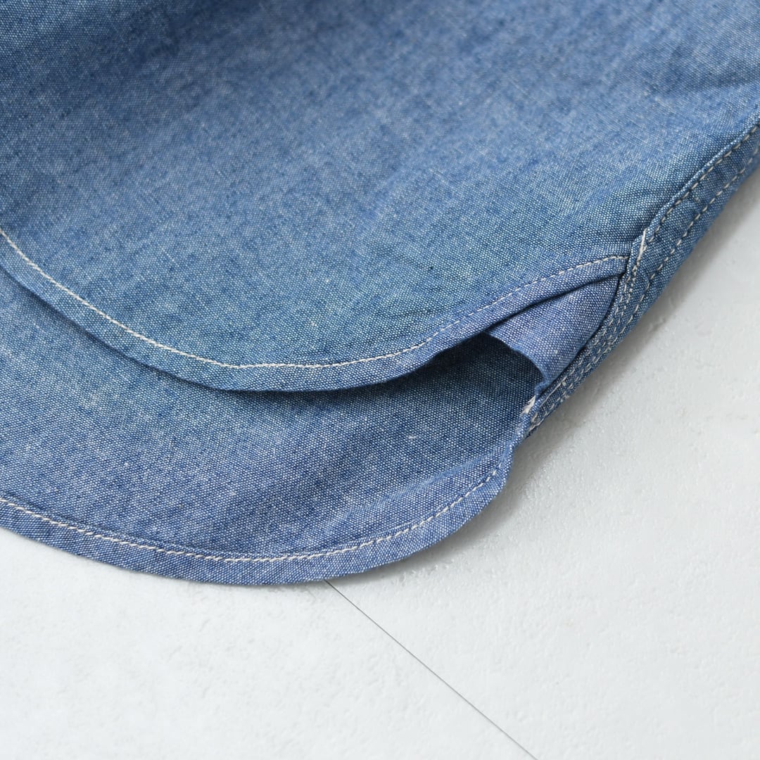 生地には、USストアブランドのシャンブレーシャツを参考に再現した素材を使用。