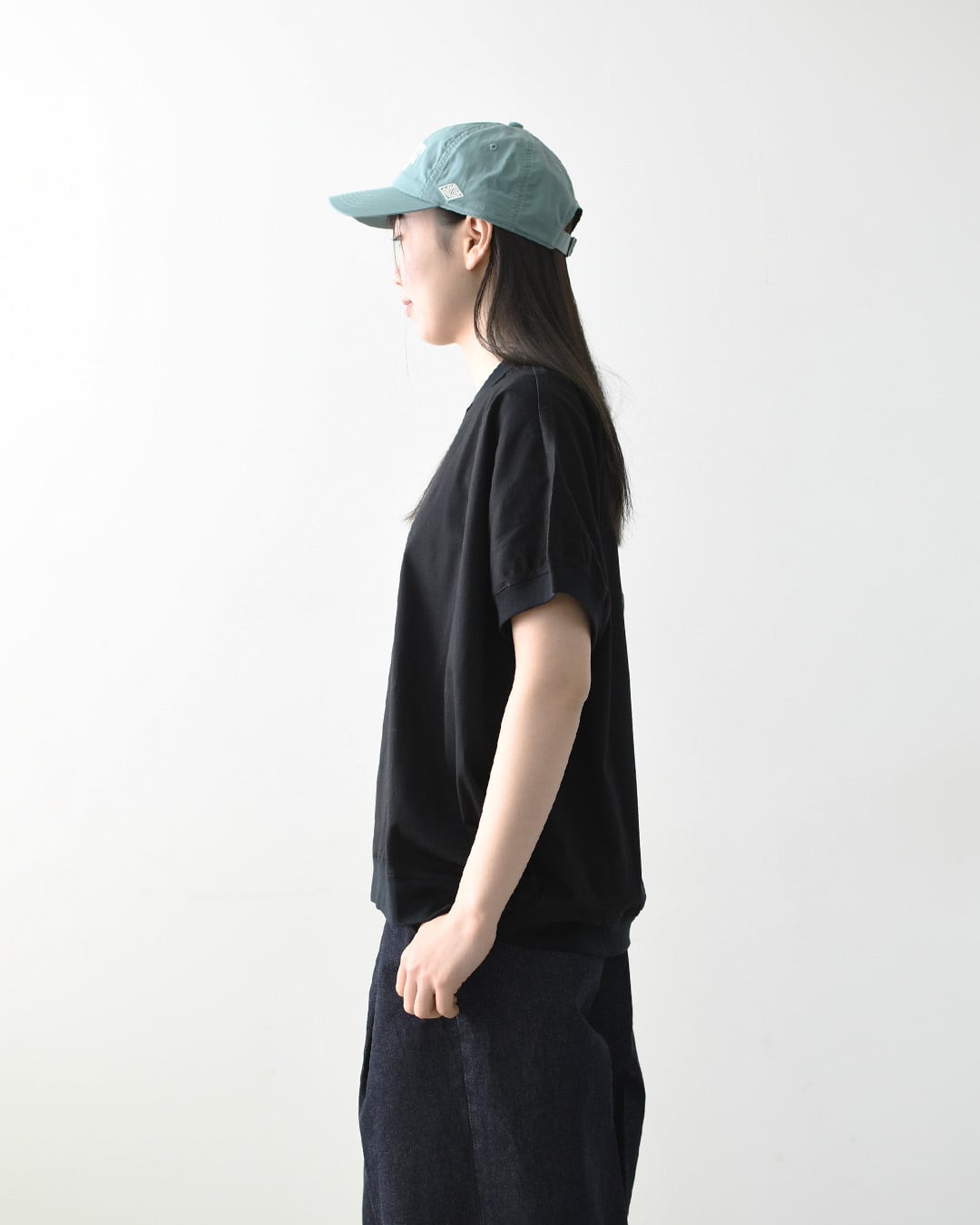 表面にほんのりとした光沢感があり、カットソーでありながら上品な雰囲気に仕上がっています。