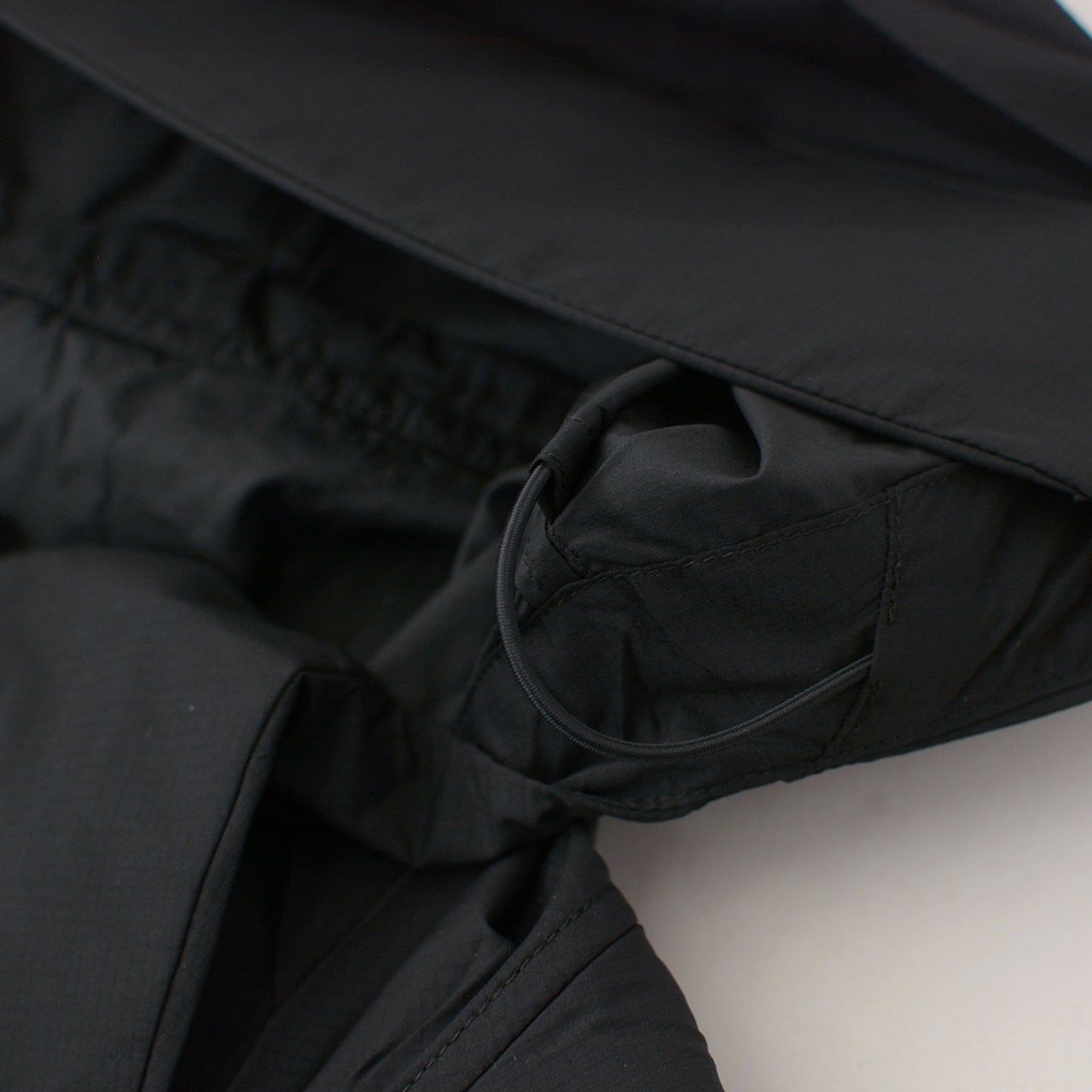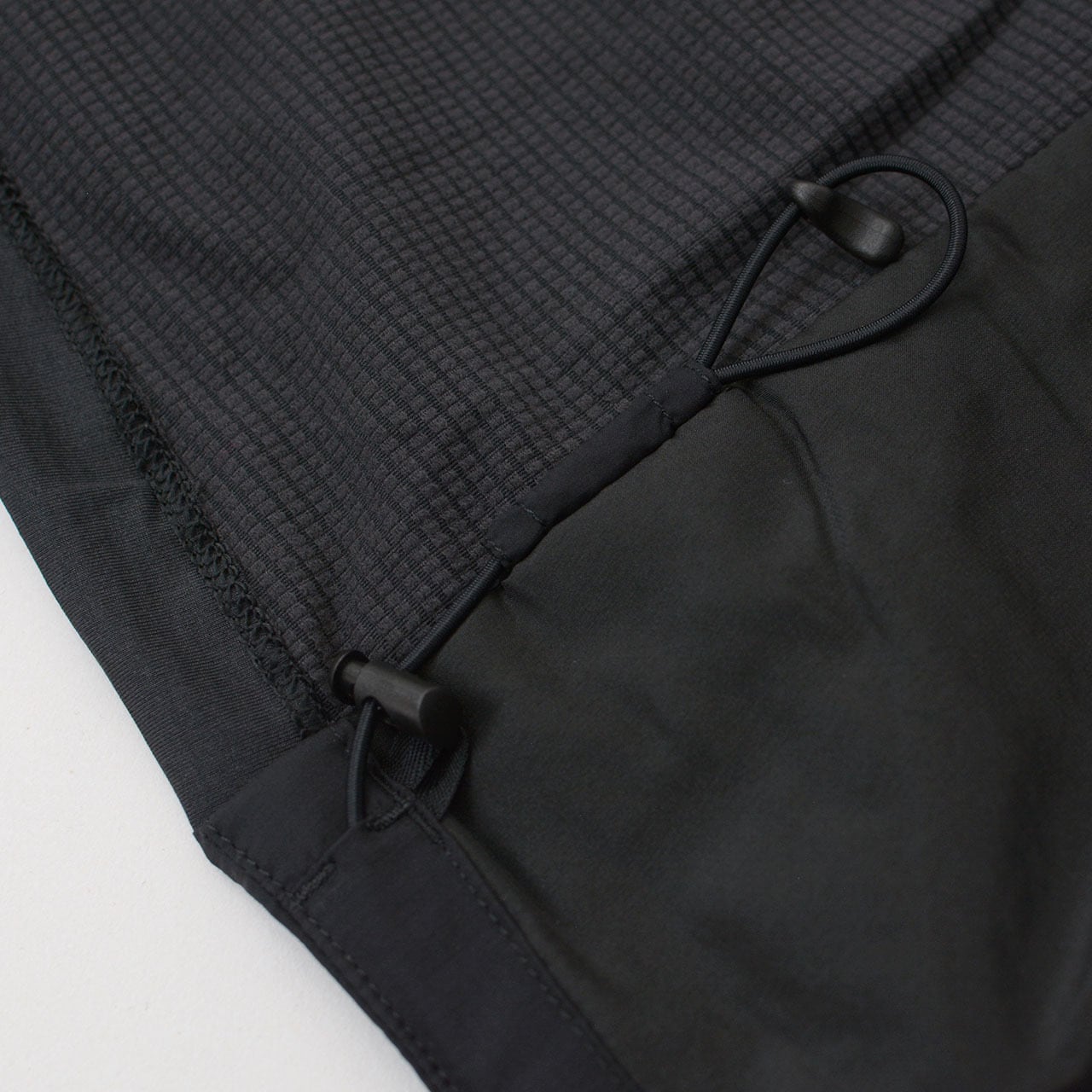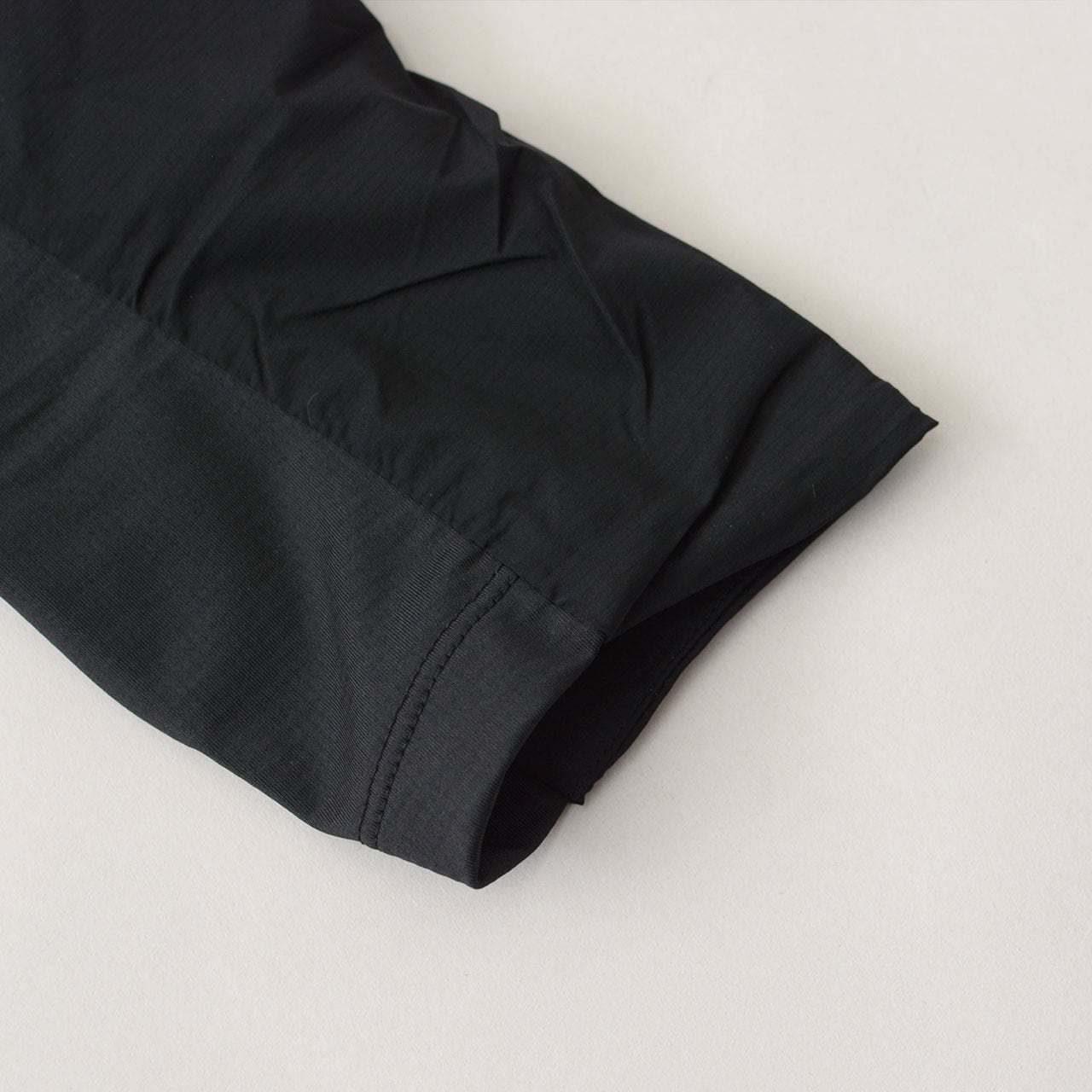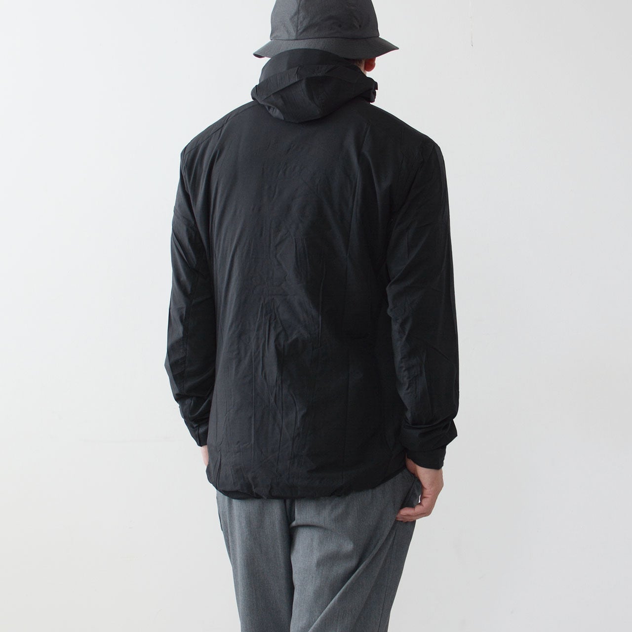 通気性と撥水性を備え、ストレッチインサレーションを袖とフードには使用せずボディにのみ使用することで、収納性を高めるとともに、体幹部を集中的に温めます。
