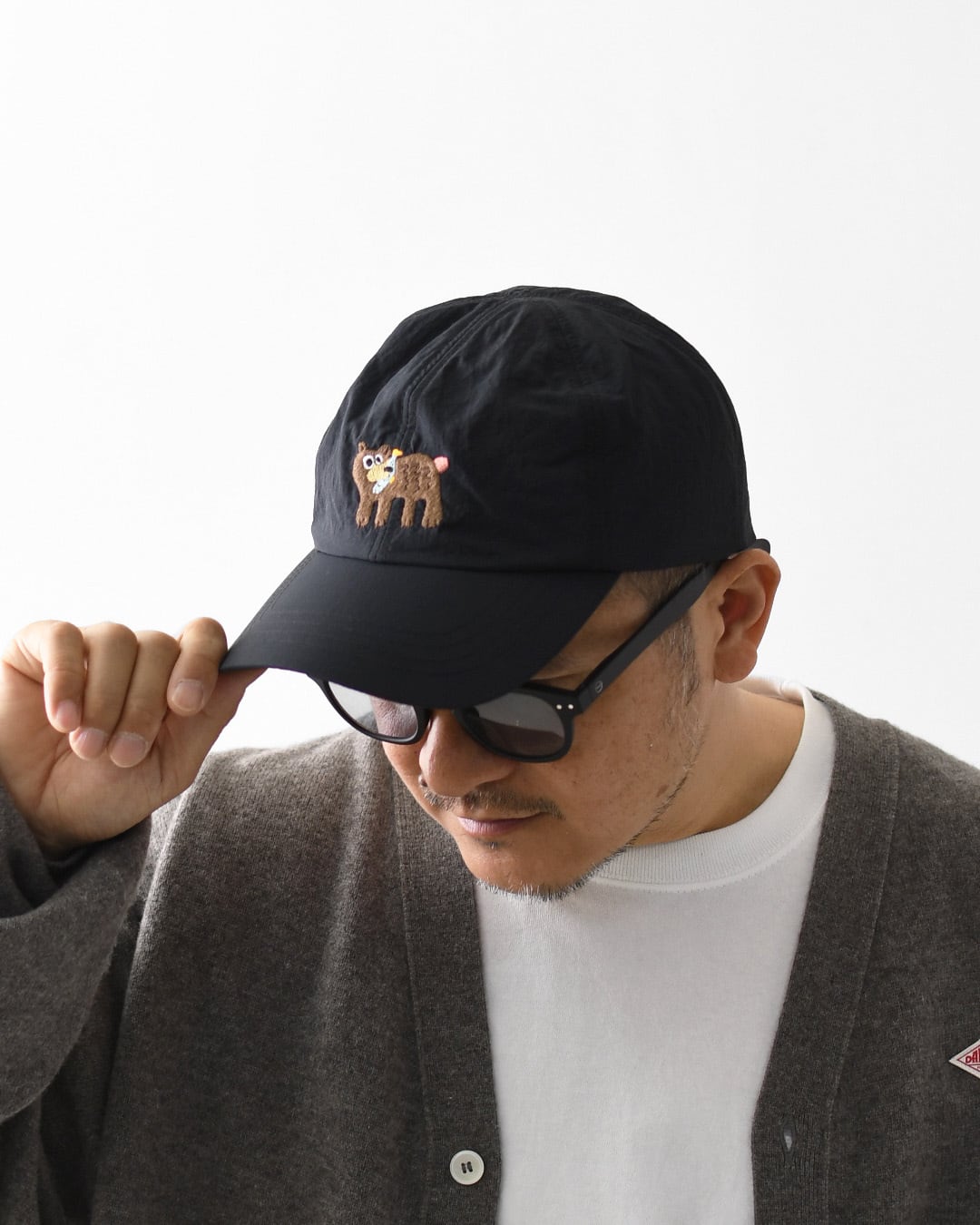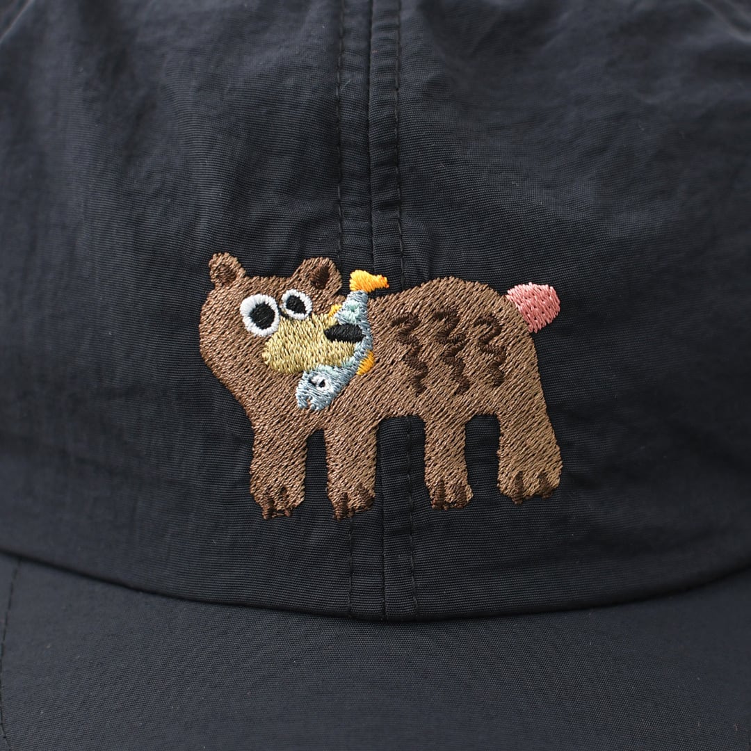フロントに配した熊の刺繍がアクセントとなり、機能性と遊び心をバランスよく備えたデザイン。