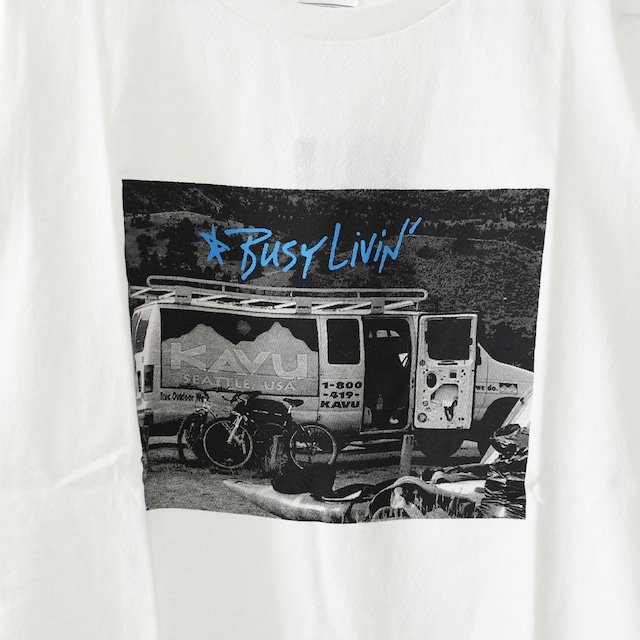 その上に「Busy Livin’」のメッセージを重ねたデザイン。