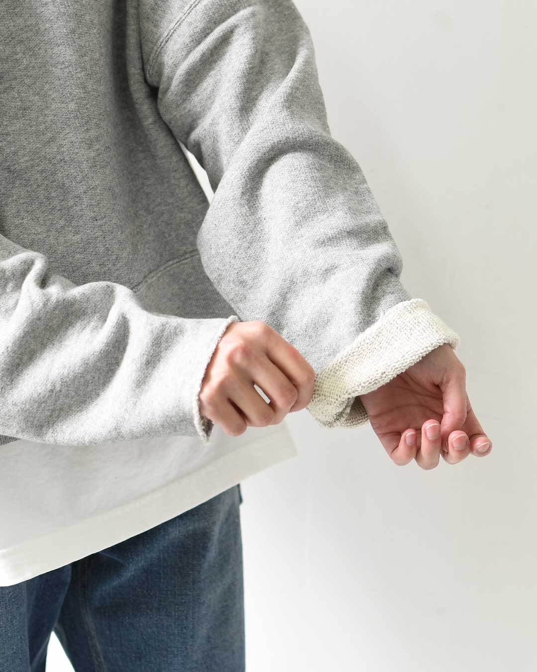 コットンとリヨセルを混紡した生地は、吊裏毛のような柔らかな風合いが特徴。