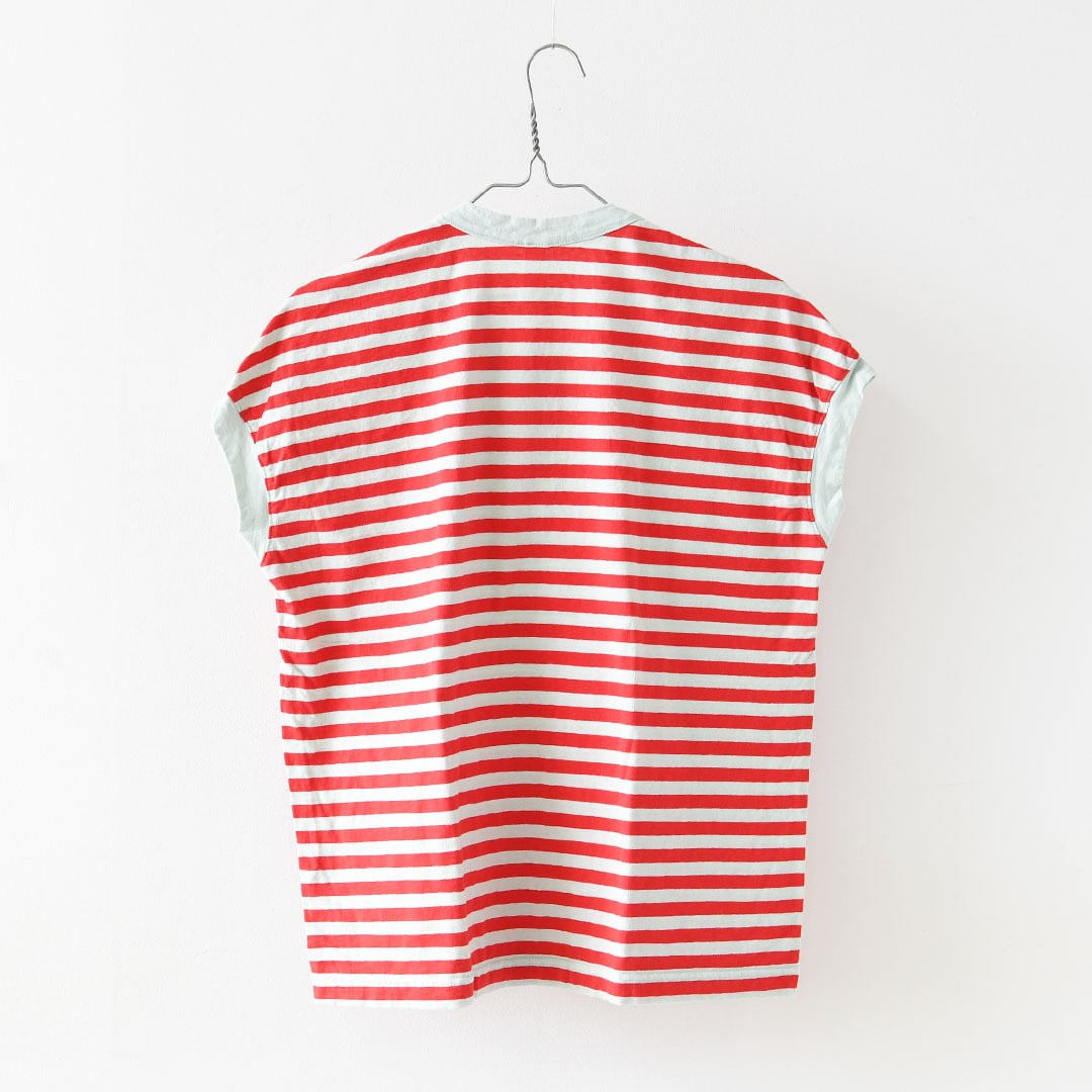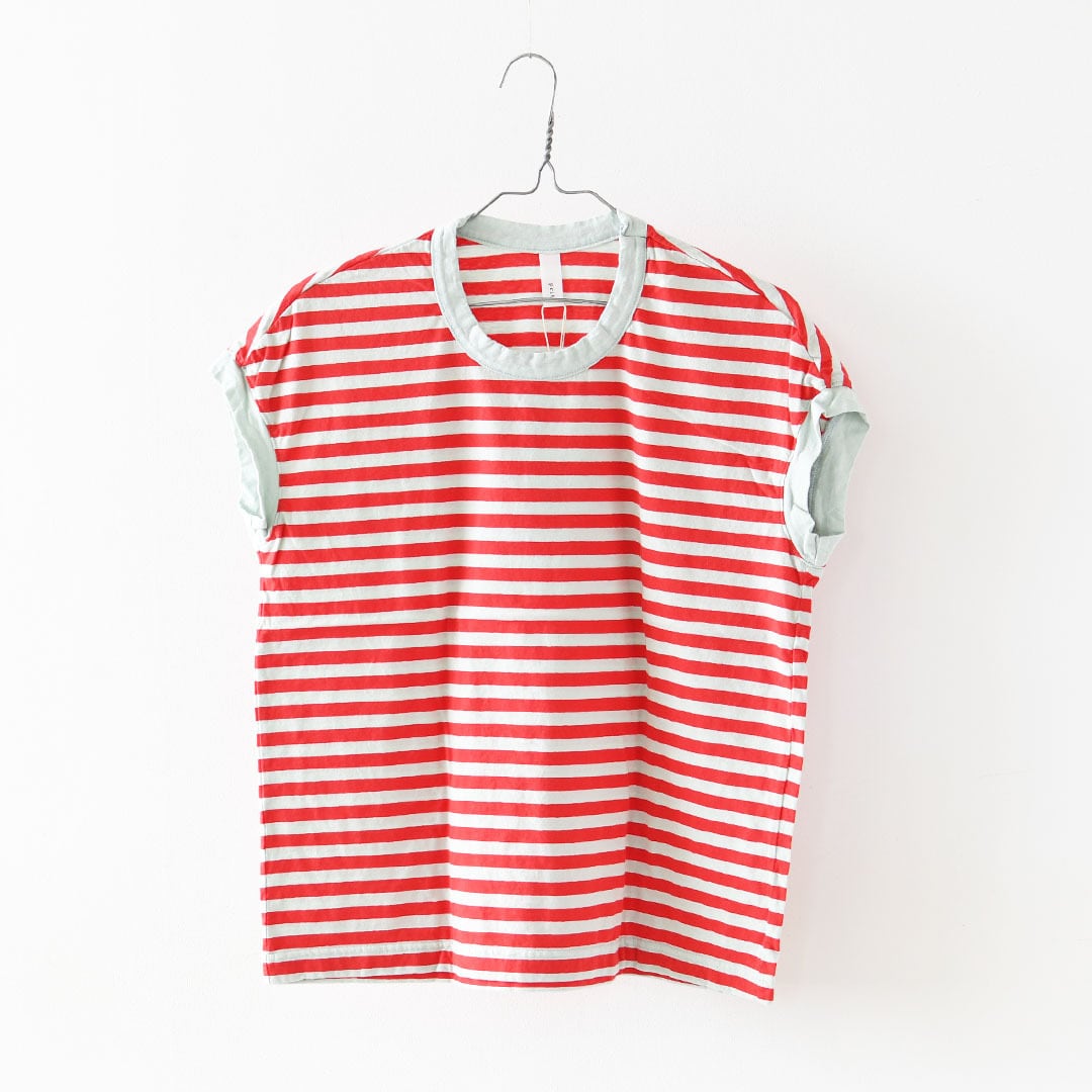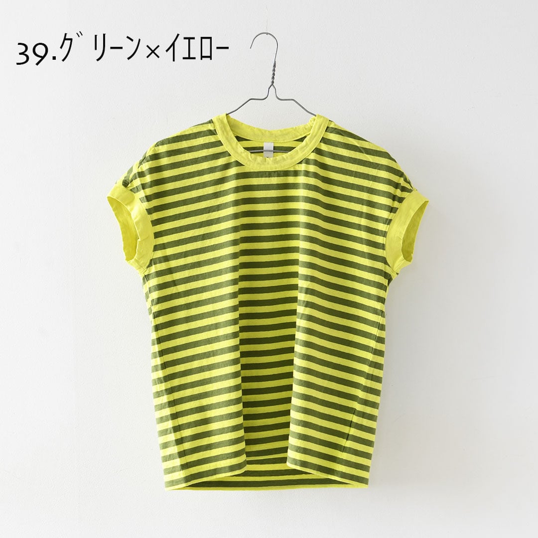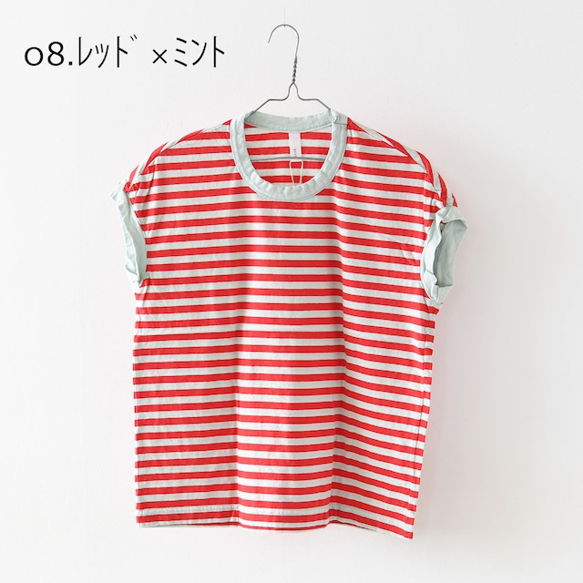 30/1リサイクル天竺カラーボーダー フレンチスリーブ [P91622] LADY'S