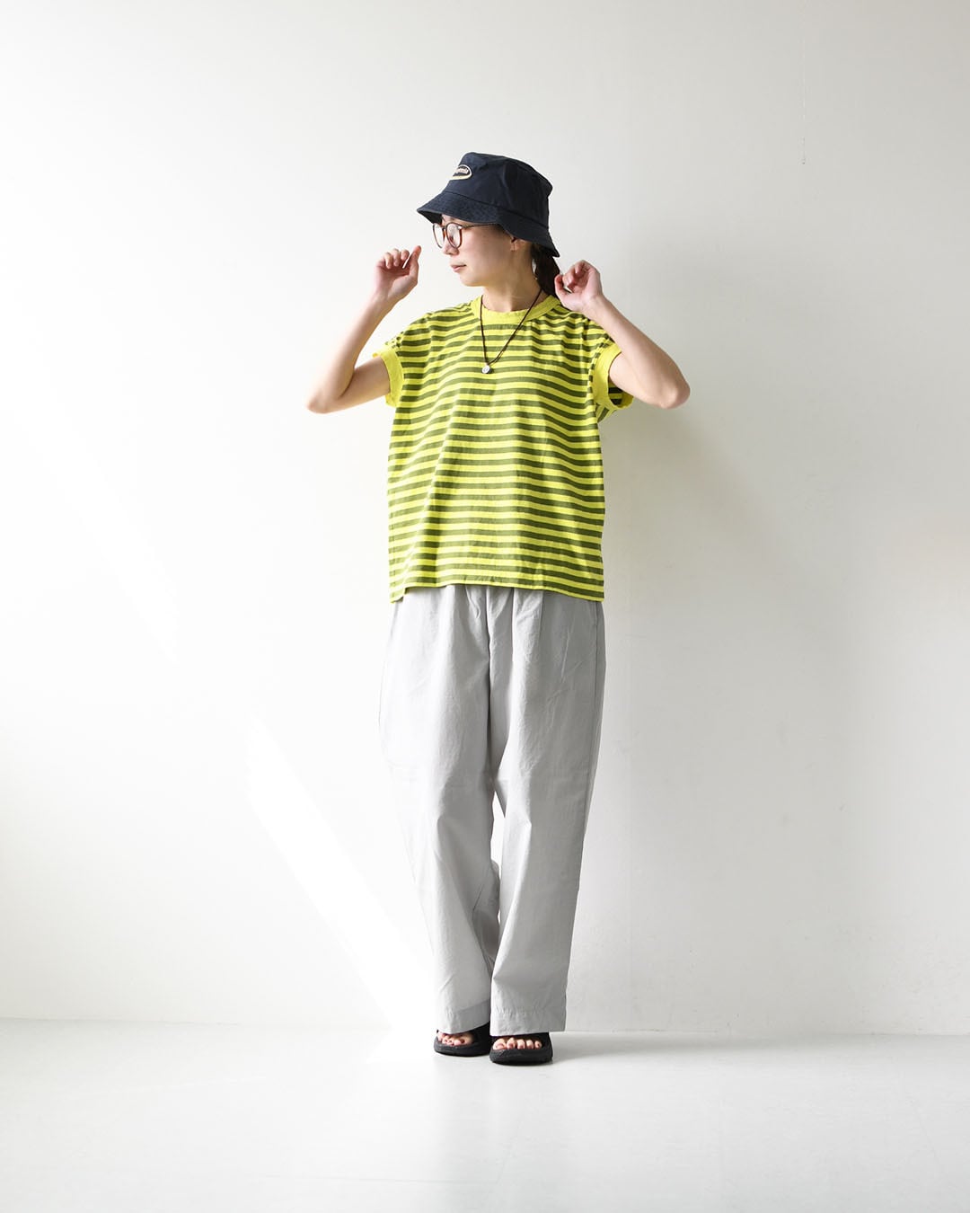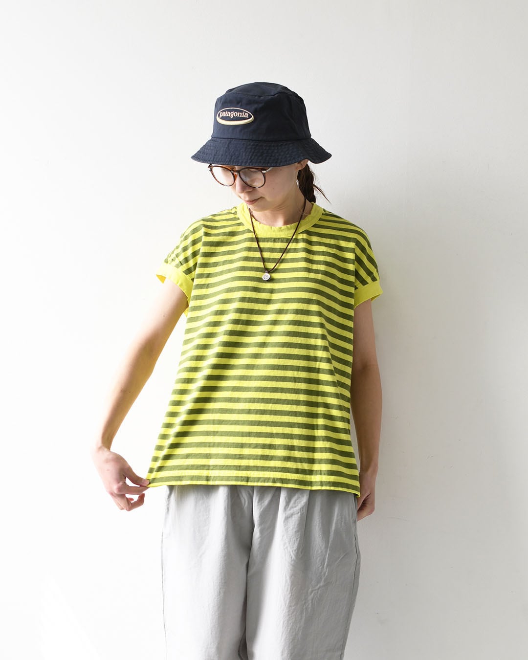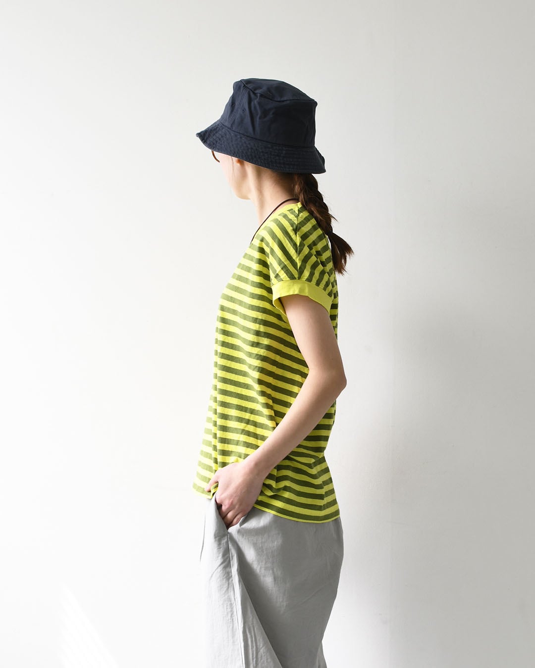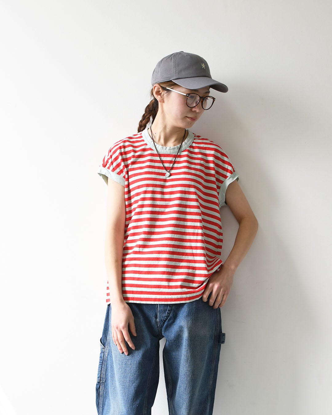 シンプルで着回しやすく、夏のデイリーコーデに活躍する一枚です。