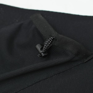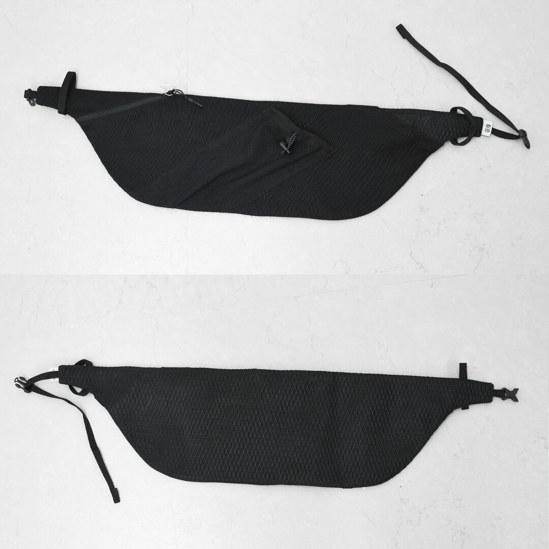 収納の目安としては、 ソフトフラスク、スマートフォン、鍵、補給ジェルなど、 ランニング時の最低限の携行品向けの容量となります。