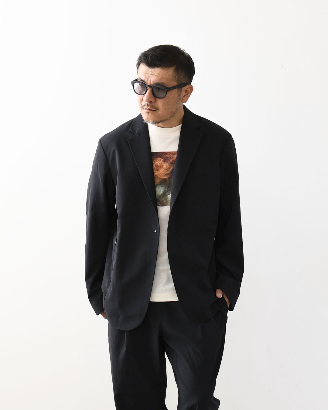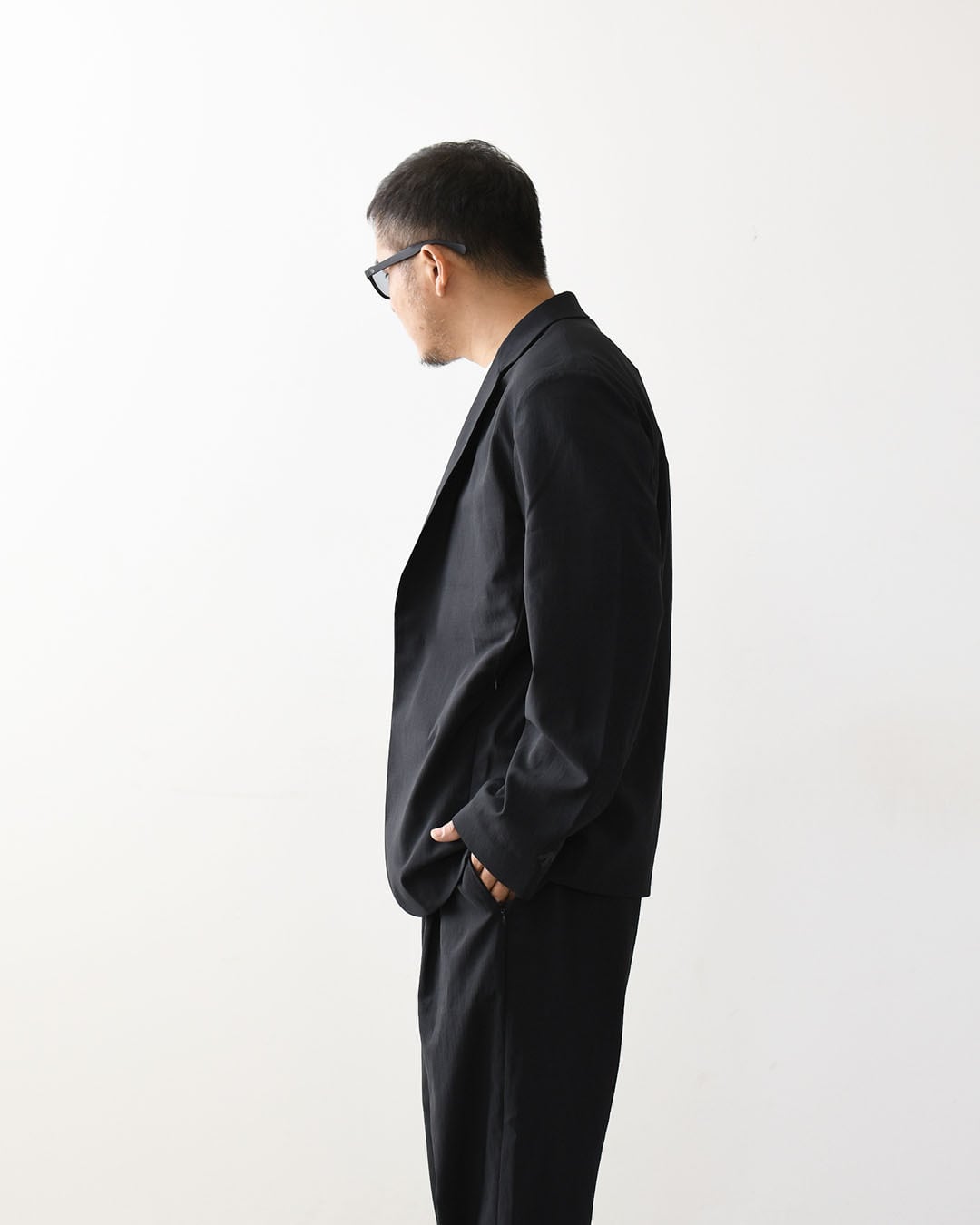 強撚の糸を使用したドライタッチな清涼素材のテーラードジャケット。