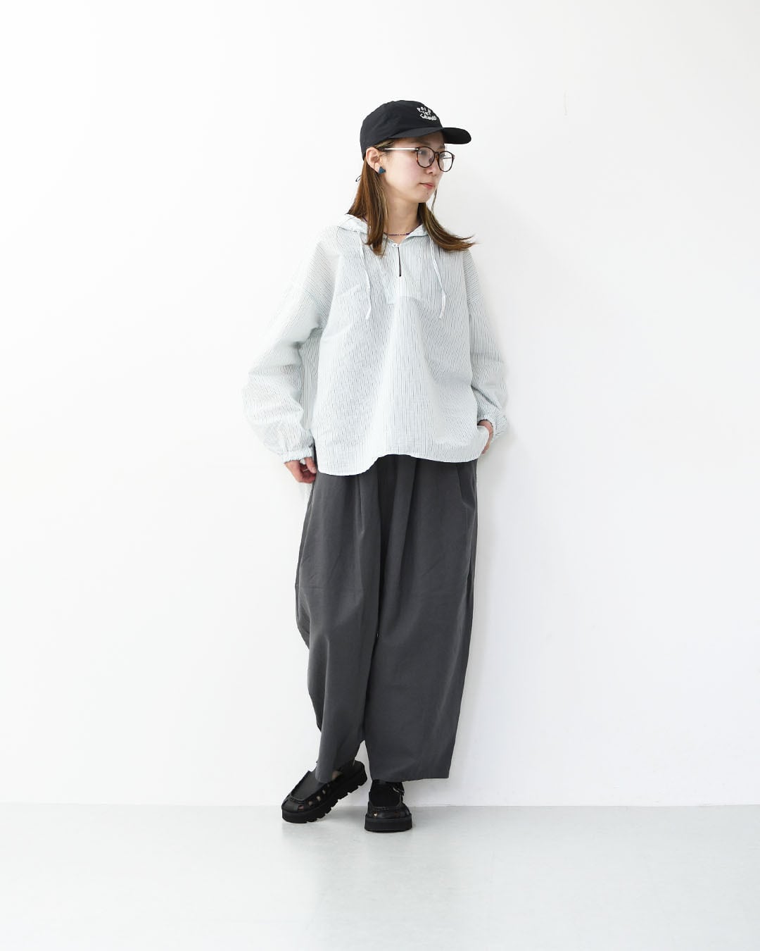 すっきりとした印象に。リラックス感がありながらもバランスの取りやすいシルエットに仕上げています。