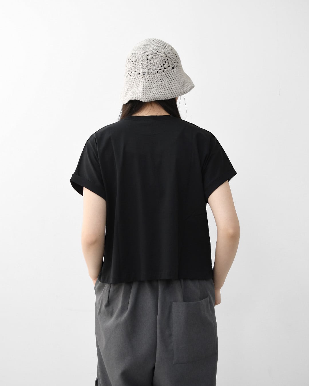 なめらかでしっとりとした肌触りが特徴で、Tシャツでありながら上品な印象に仕上がっています。