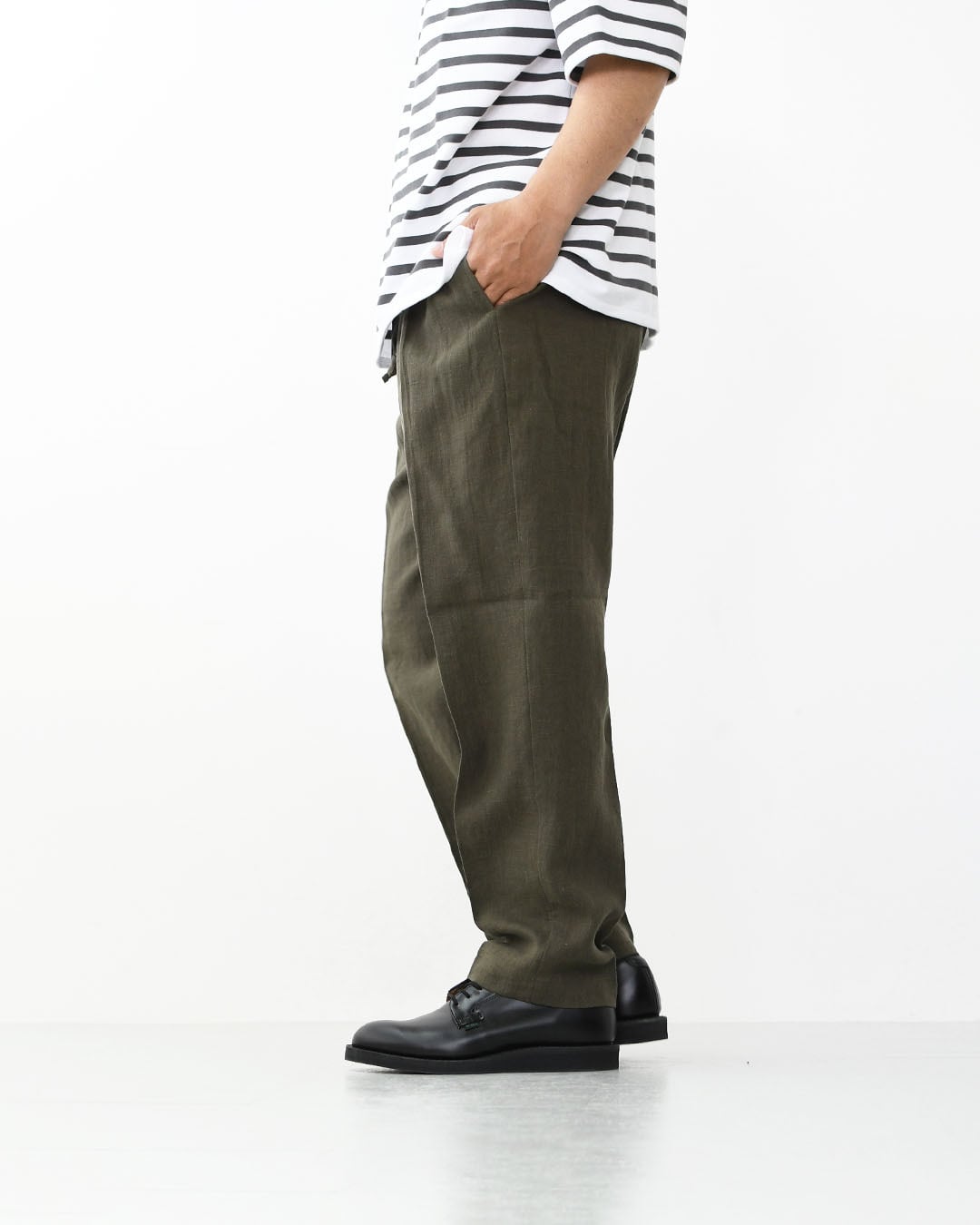120%リラックスした穿き心地と、 麻の上質感で夏のオススメパンツに仕上がっています。