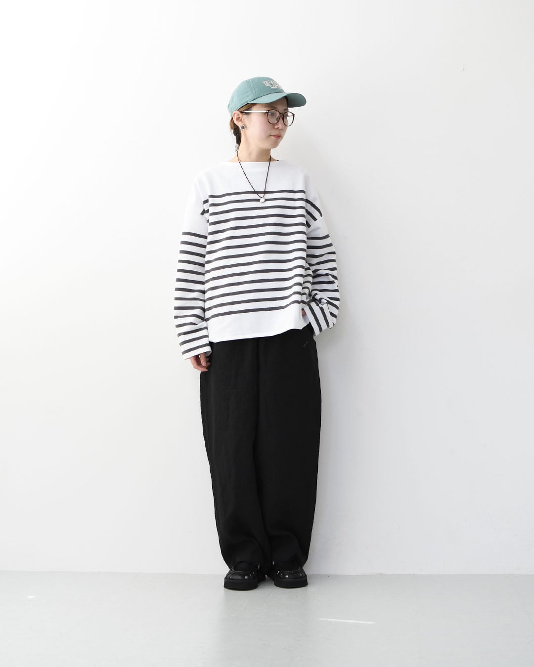 ワイドパンツやスカートと合わせたバランスのある着こなしもおすすめ。