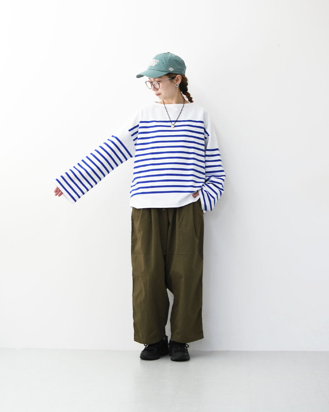 短めの着丈が、全体をすっきりとまとめてくれます。