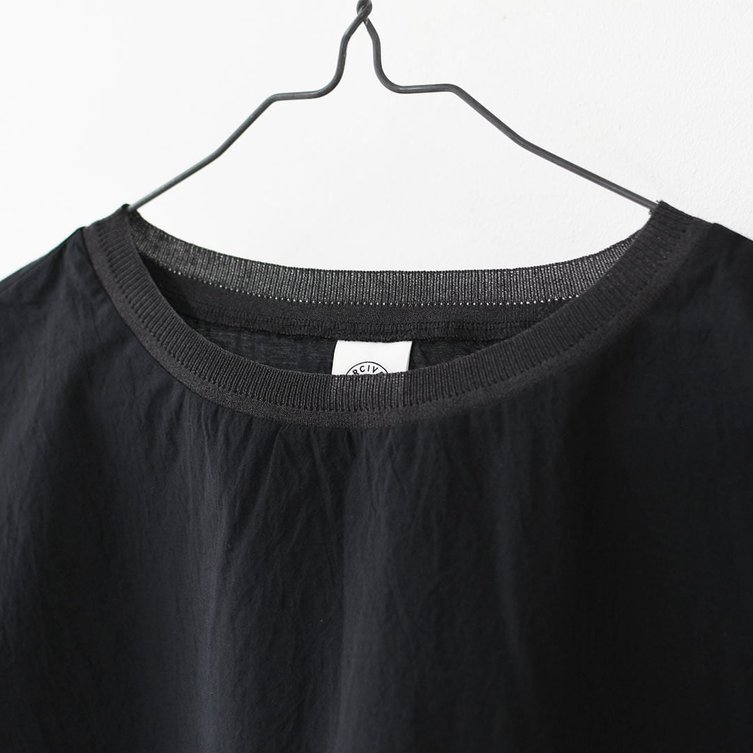 軽やかで繊細な素材感が特徴で、シンプルながらも一枚で雰囲気の出るアイテムに仕上がっています。