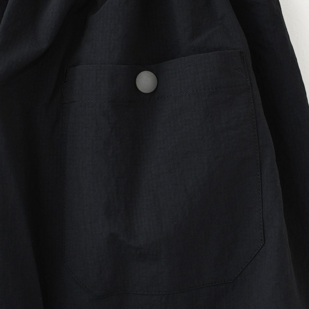 マットな質感とコットンライクなやわらかさで、ナイロン特有のスポーティーさを程よく抑え、日常に取り入れやすい仕上がりです。