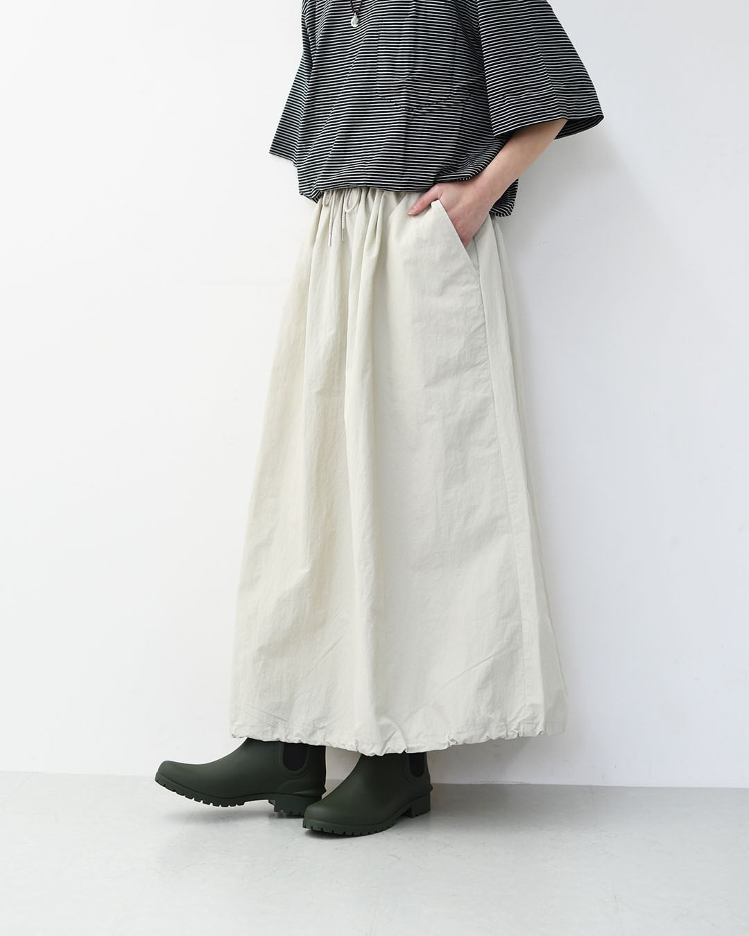 機能性と軽やかさを兼ね備えた、アーバンスタイルのロングスカート。