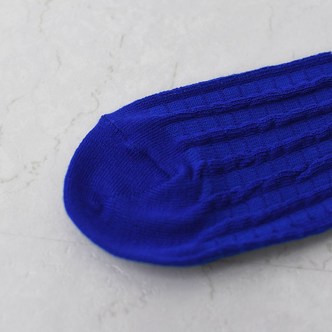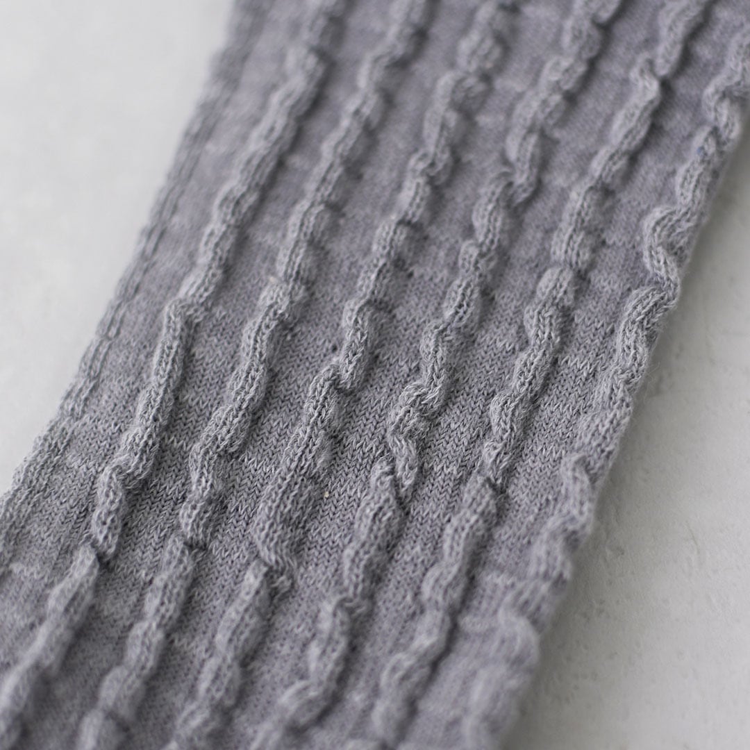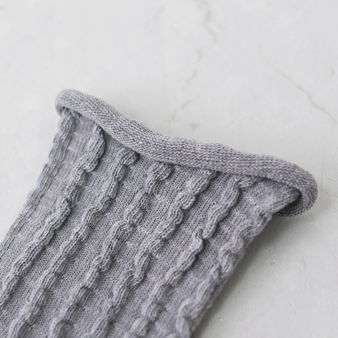 ぽこぽことした凹凸のある編地が特徴で、やわらかな肌あたりとさらりとした履き心地が魅力です。