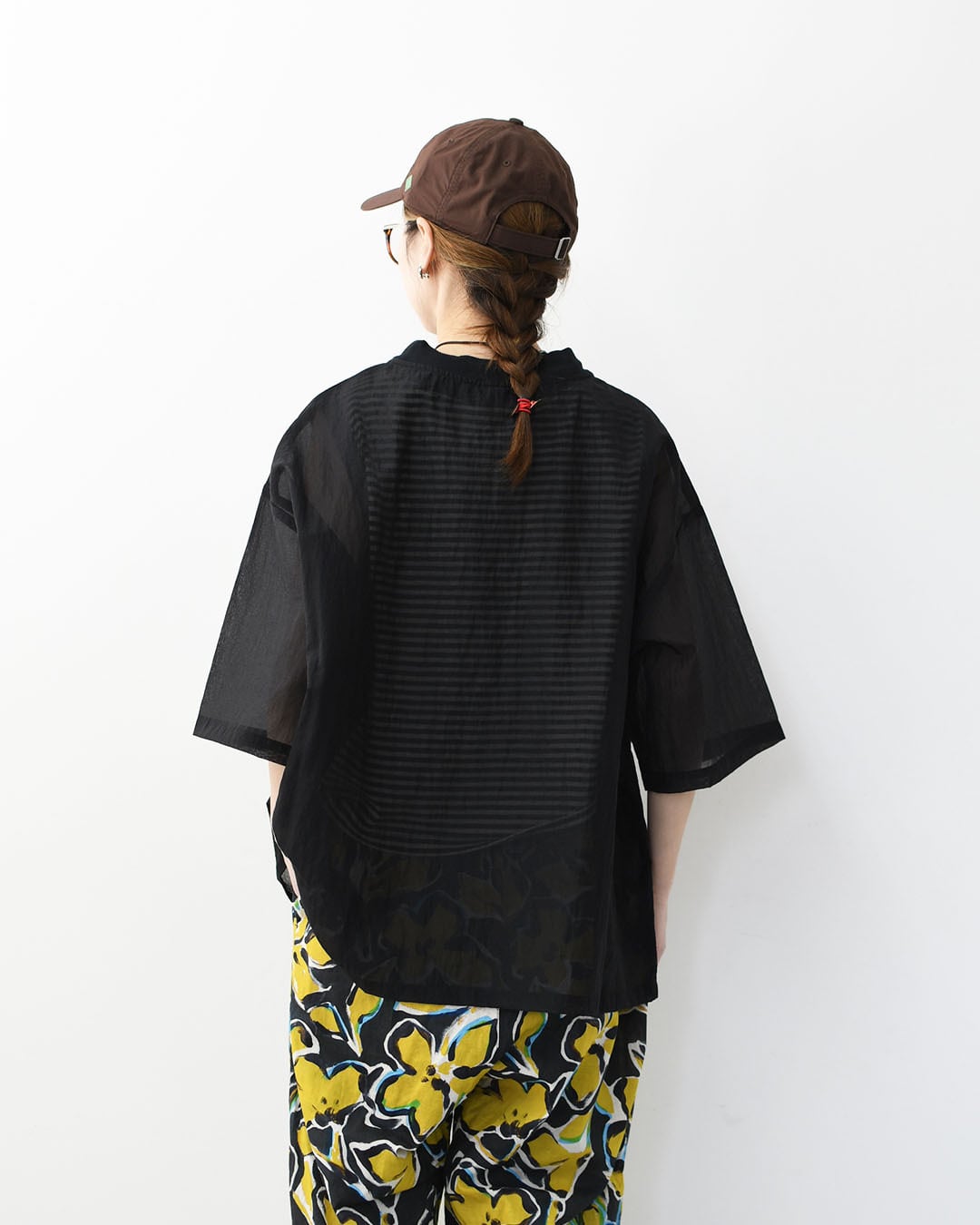 軽やかな透け感と、独特なハリ感が魅力の5分袖プルオーバー。