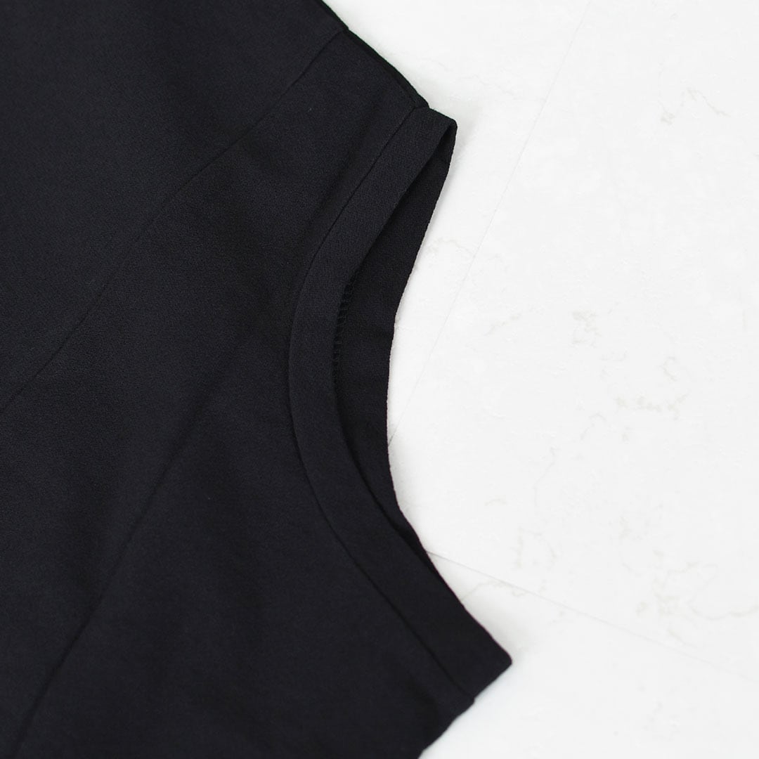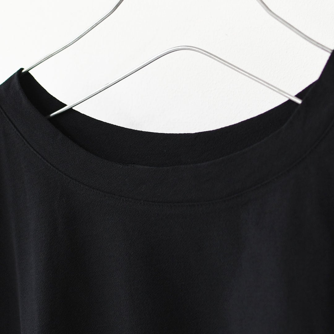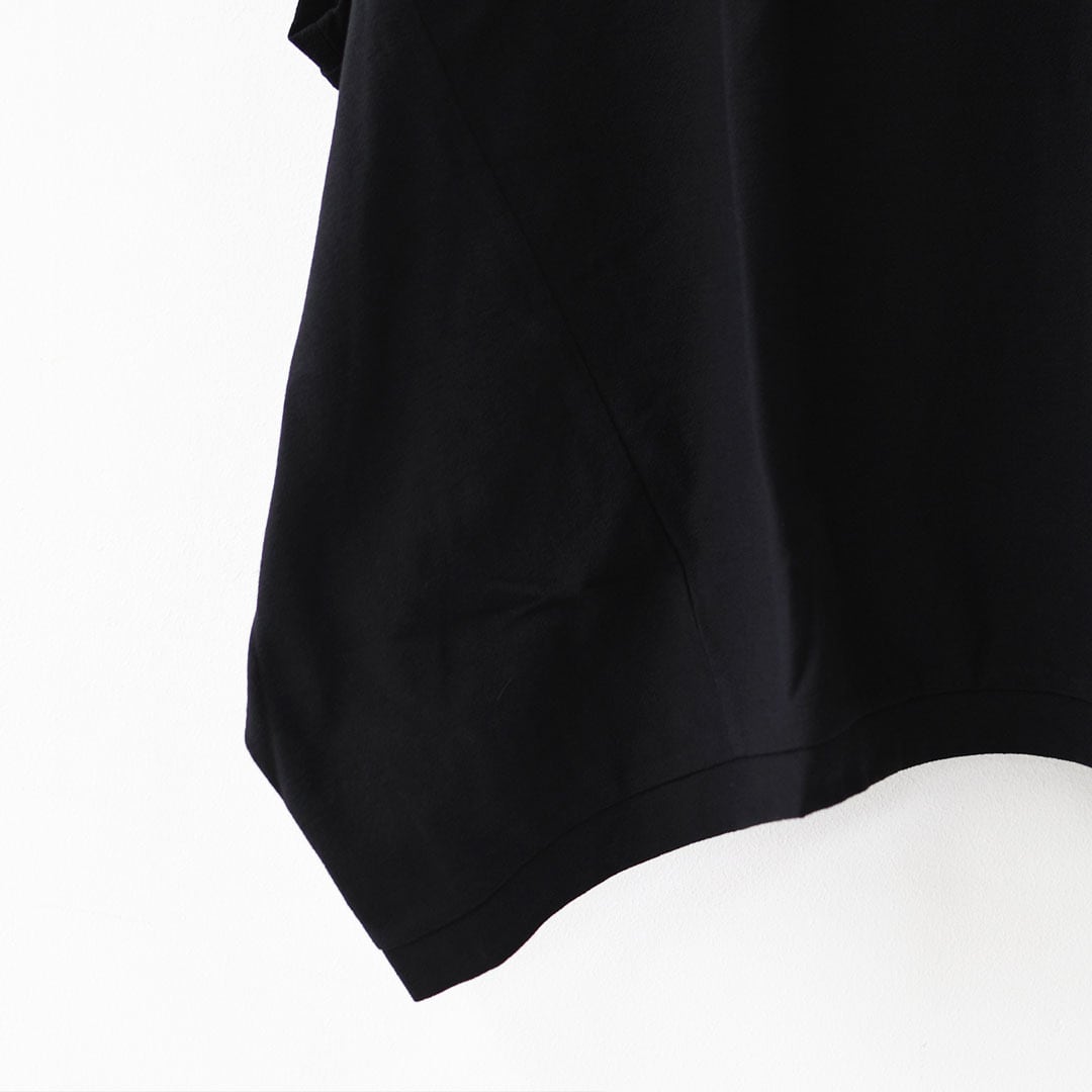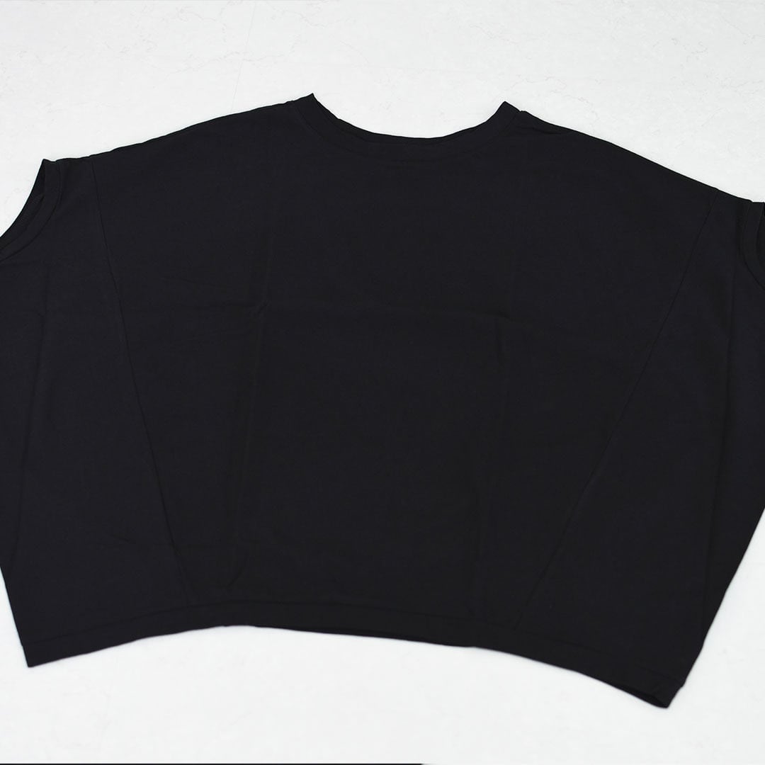 ゆったりとした身幅に加え、5分袖のバランスが絶妙で、ベストのような感覚でレイヤードも楽しめるデザイン。