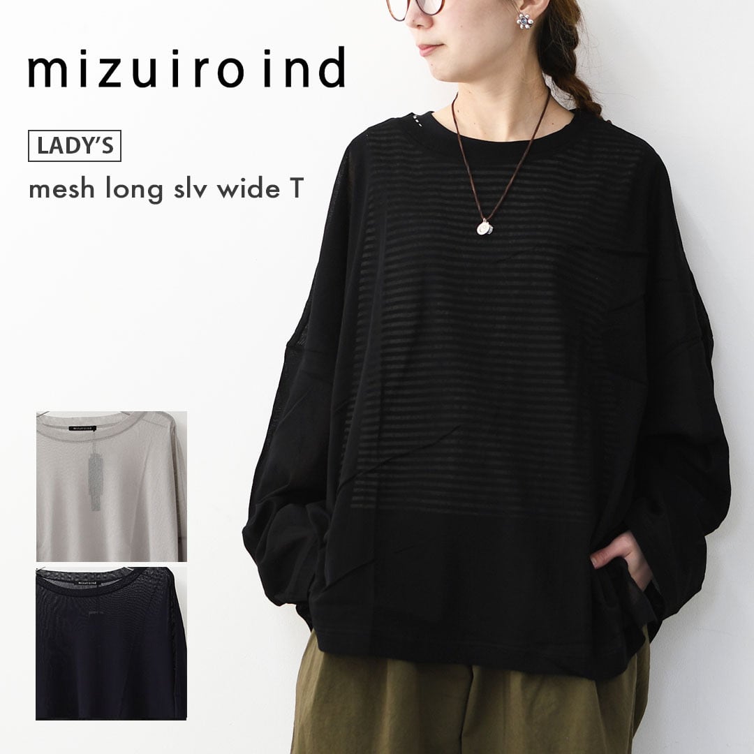 mizuiro ind [ミズイロ インド] mesh long sleeve wide T [1-210062] メッシュロングスリーブワイドT・ワイドシルエット・ゆったりシルエット・キレイめ・LADY'S [2026SS]