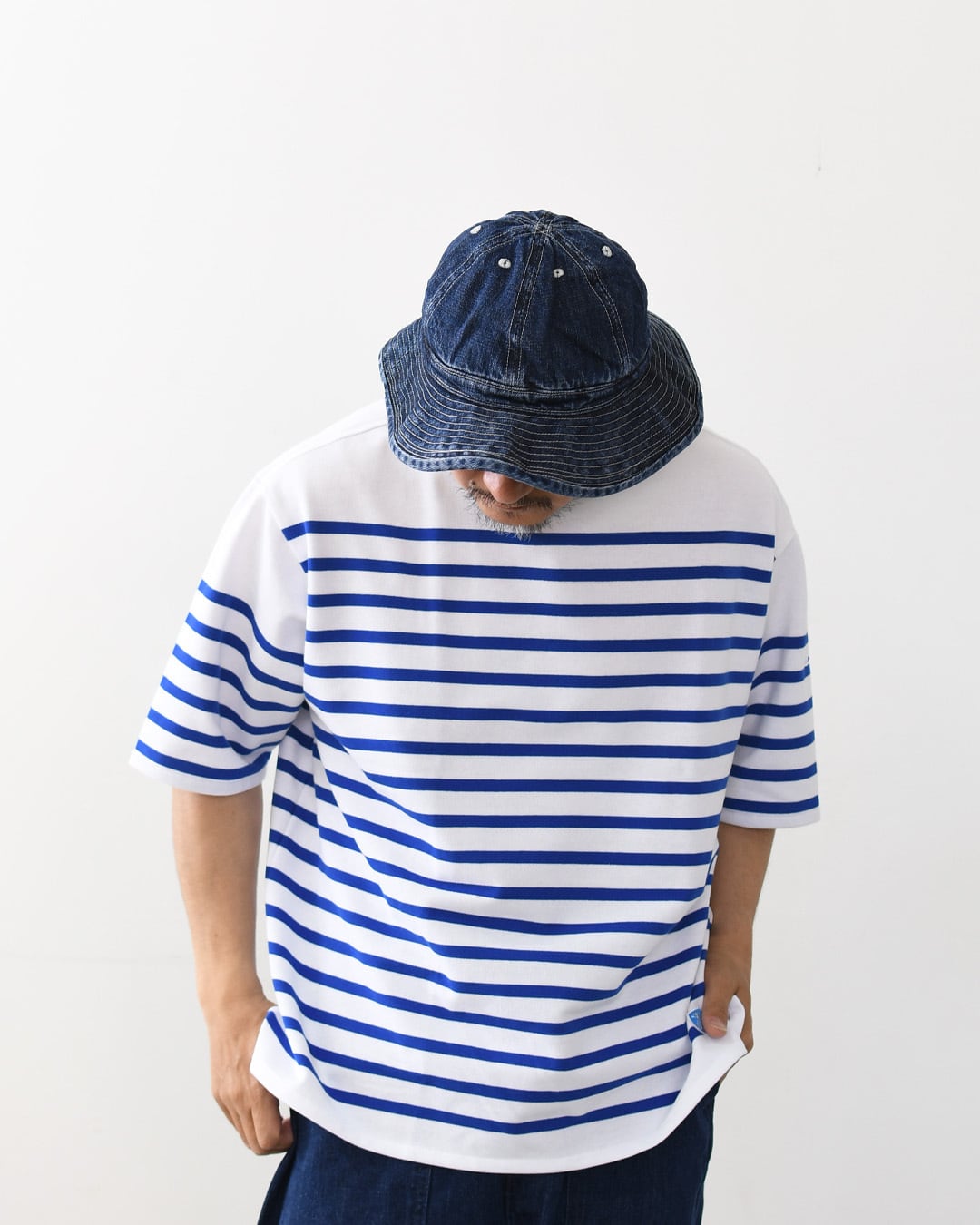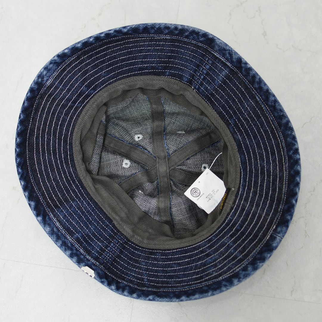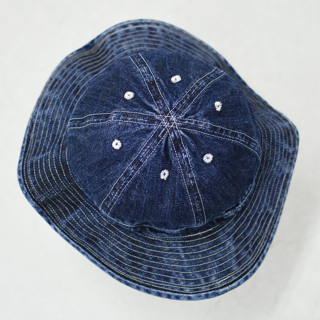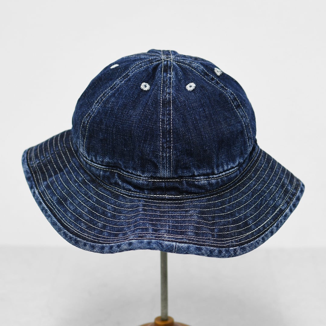 日差しをしっかりと遮る広めのブリムなど、実用性に基づいたディテールを踏襲しつつ、無骨な佇まいとデニムならではの風合いが絶妙に調和した一品です。
