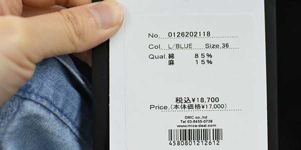 素材 綿 85%、麻 15%