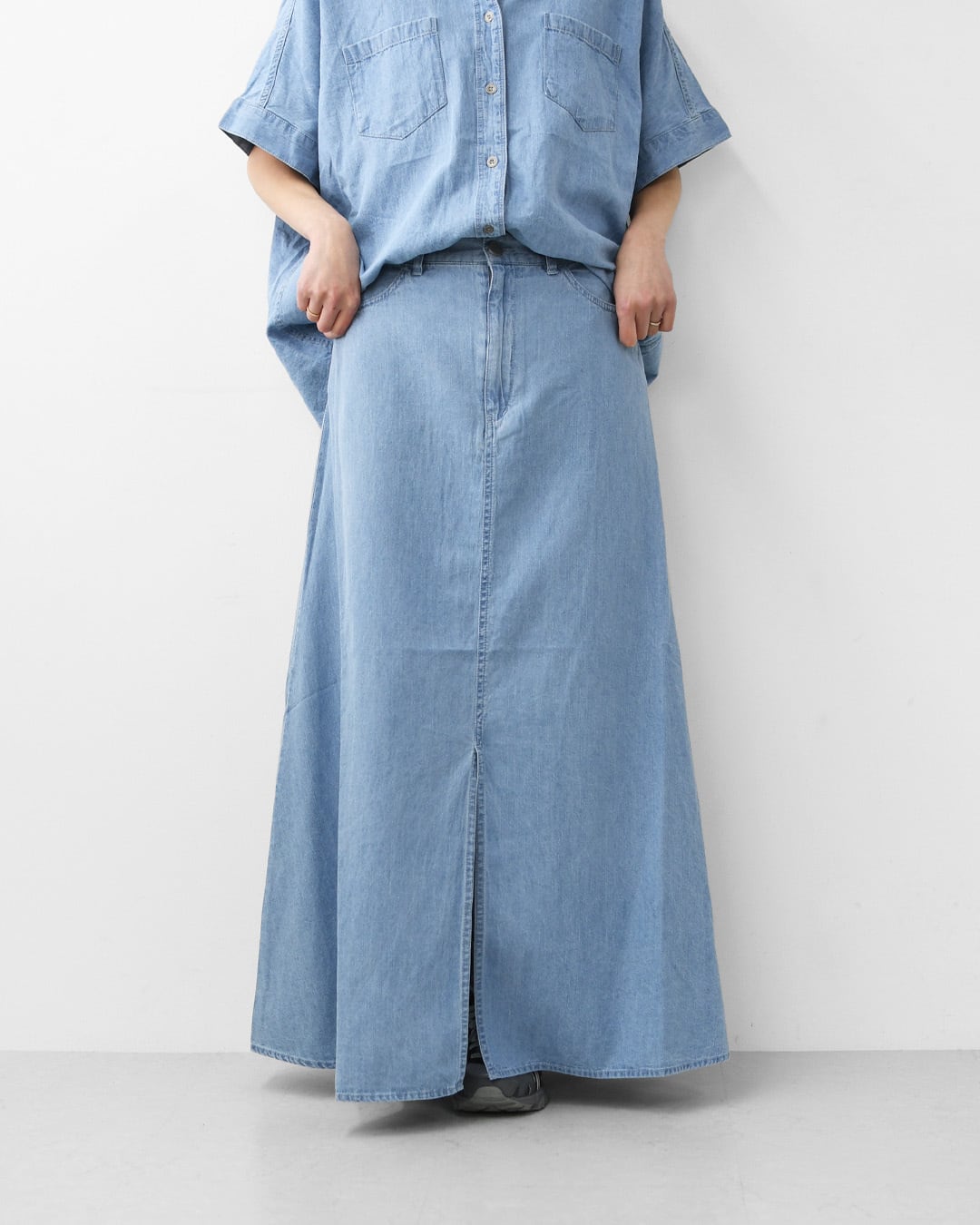 軽やかな穿き心地のデニム素材なので、暑い時期にも涼しくスタイリングしていただけます。