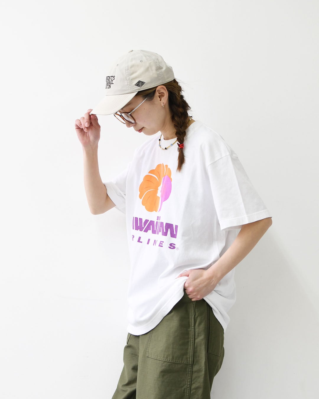 Hawaiian Airlines(ハワイアン航空)を象徴するハイビスカスのロゴをフロントに配したTシャツ。
