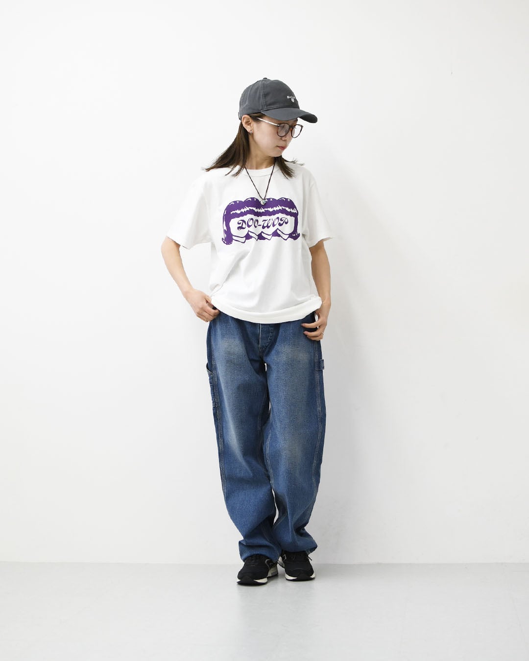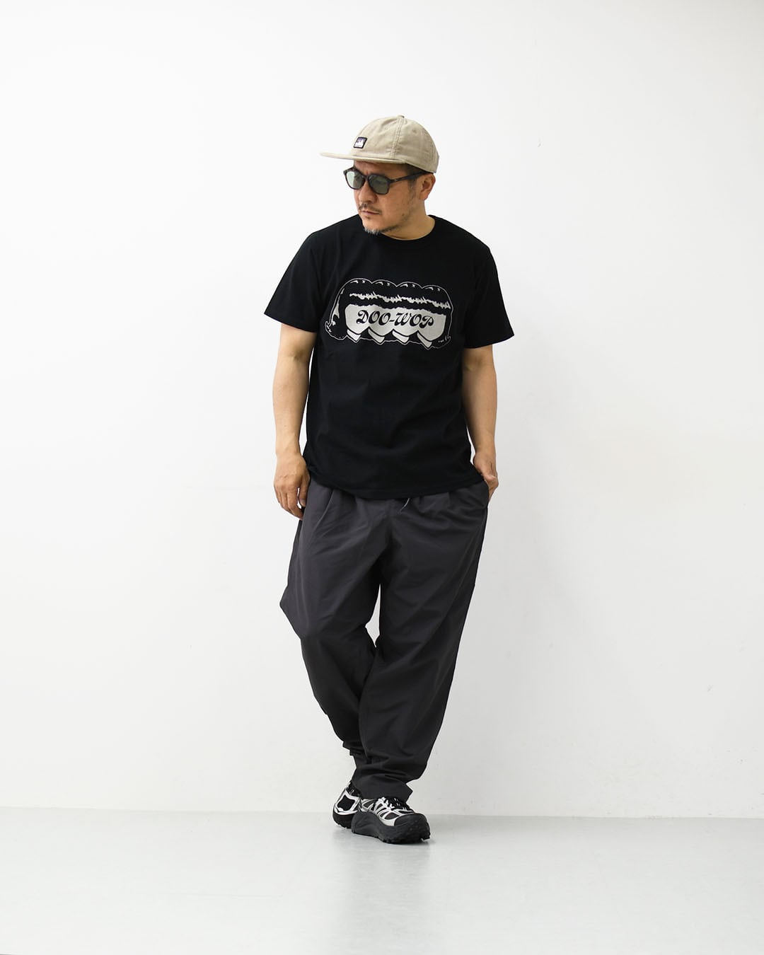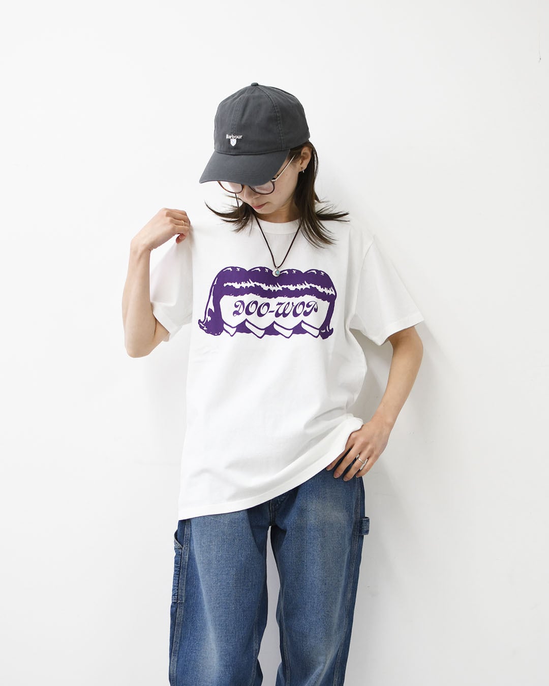 フロントに配された“DOO-WOP”のレタリングとユニークなモチーフが印象的で、どこかレトロな空気感を感じさせるデザイン。ブラックボディに落ち着いた配色のプリントが、主張しすぎずスタイリングに自然と馴染みます。