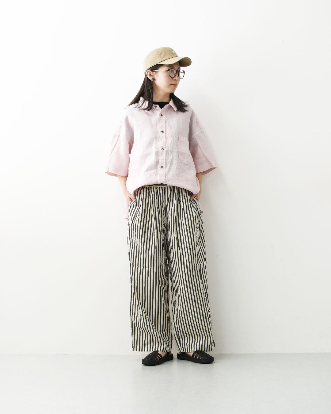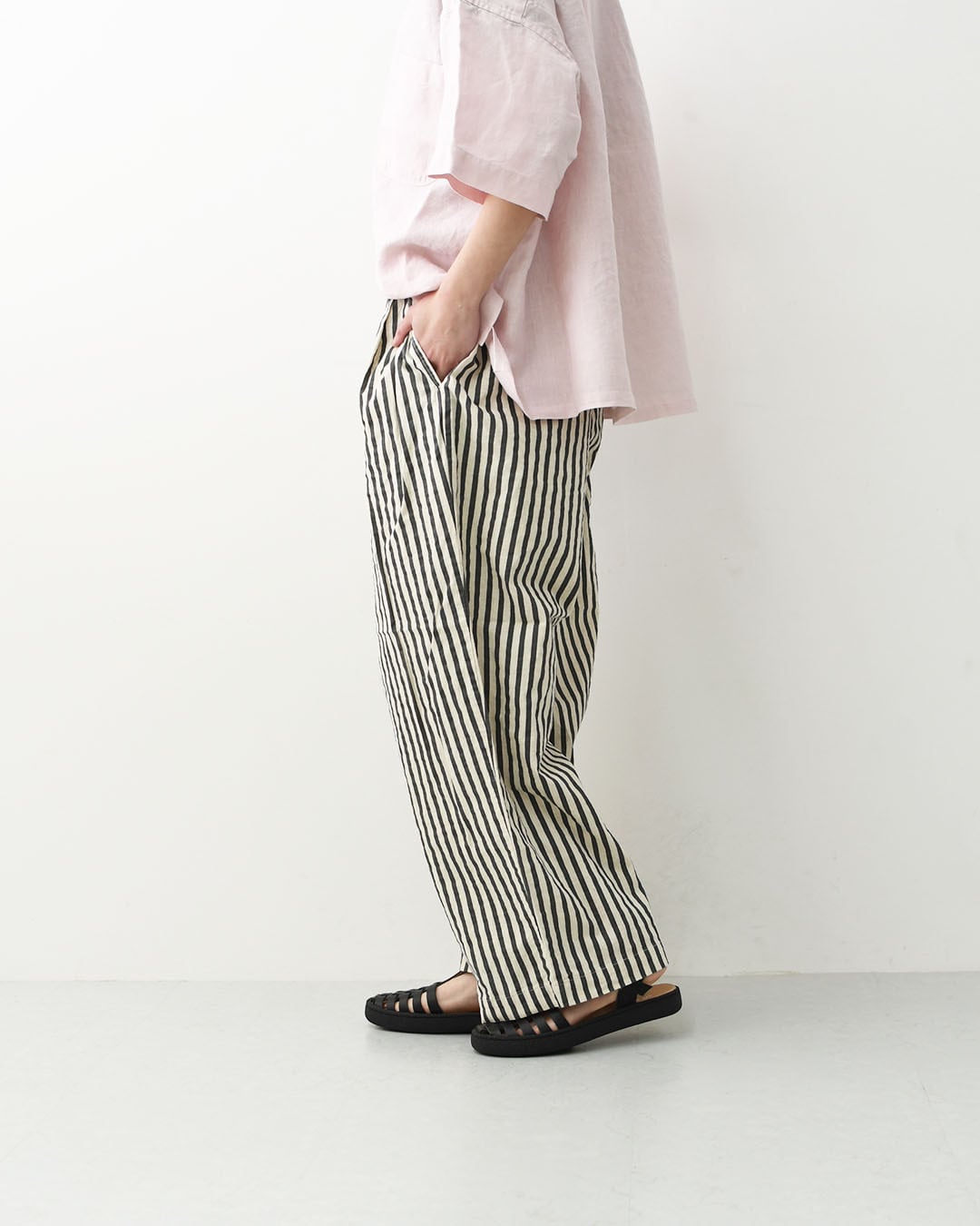 20/1コットンリネンストライププリントタックイージーパンツ [P72600] LADY'S