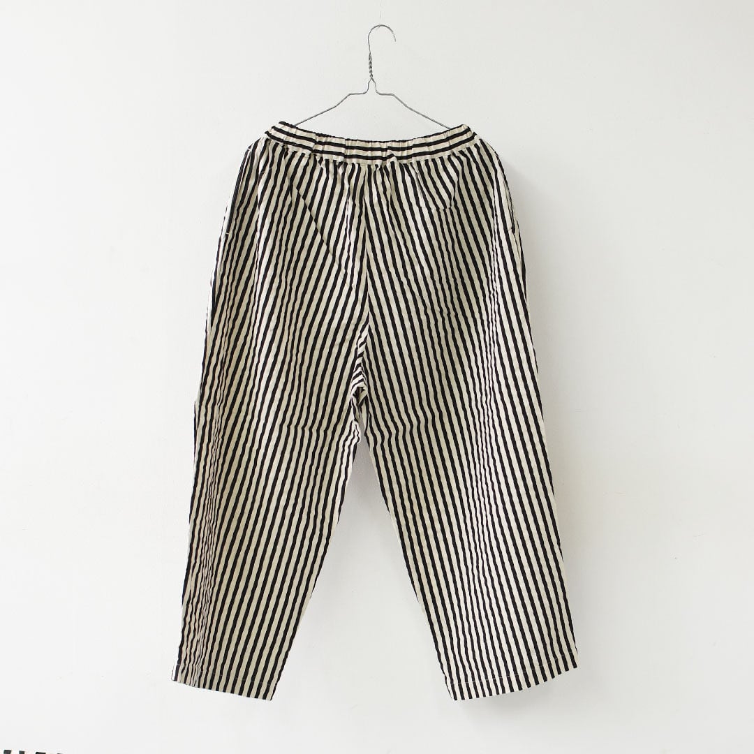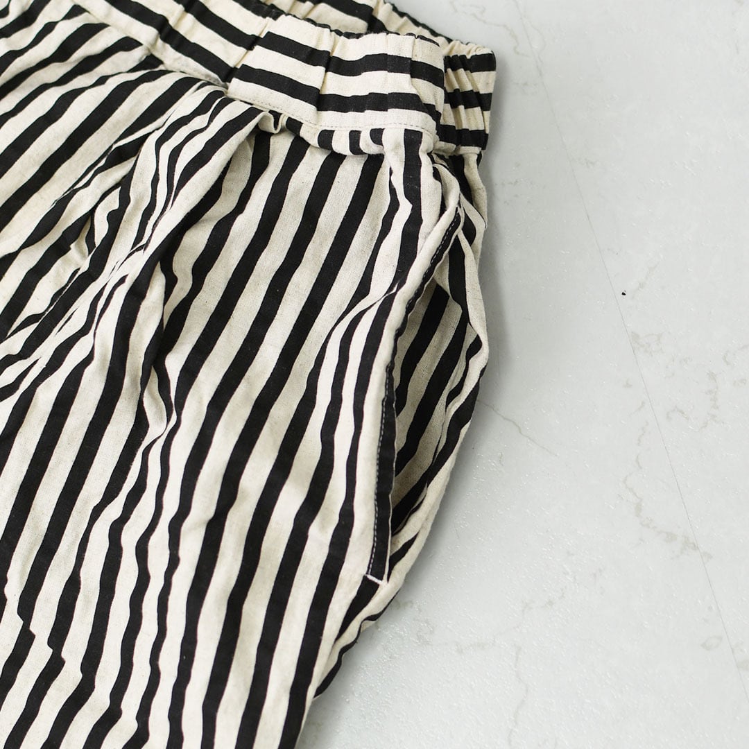 コットンリネンならではのナチュラルな風合いが魅力の、ストライププリントイージーパンツ。