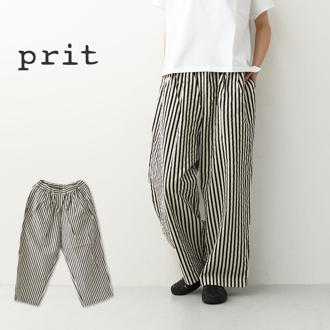 prit [プリット] 20/1コットンリネンストライププリントタックイージーパンツ [P72600] イージーパンツ・リラックスパンツ・ゆったっりシルエット・ワイドパンツ・ストライプ柄・LADY'S [2026SS]