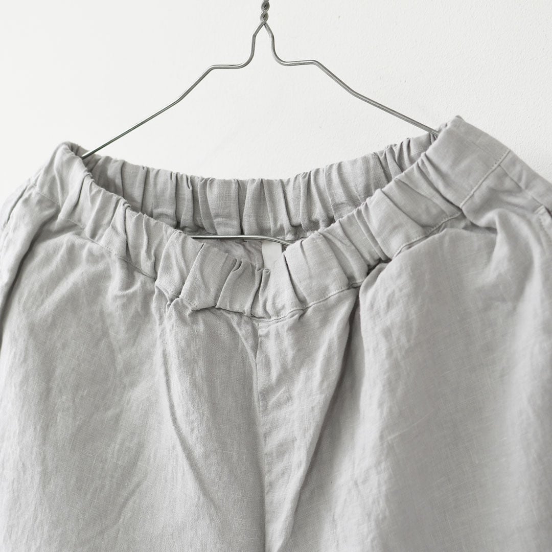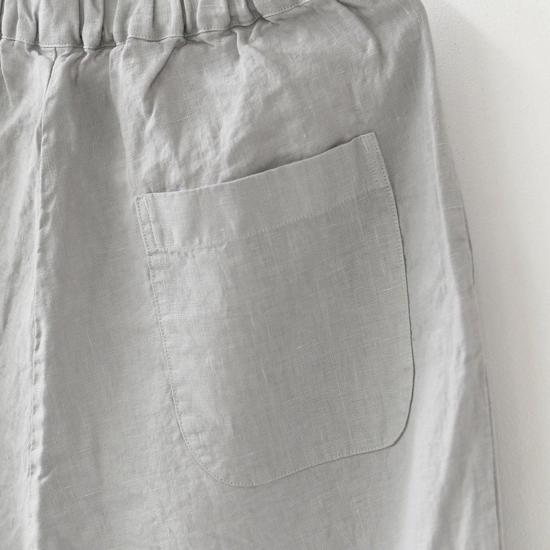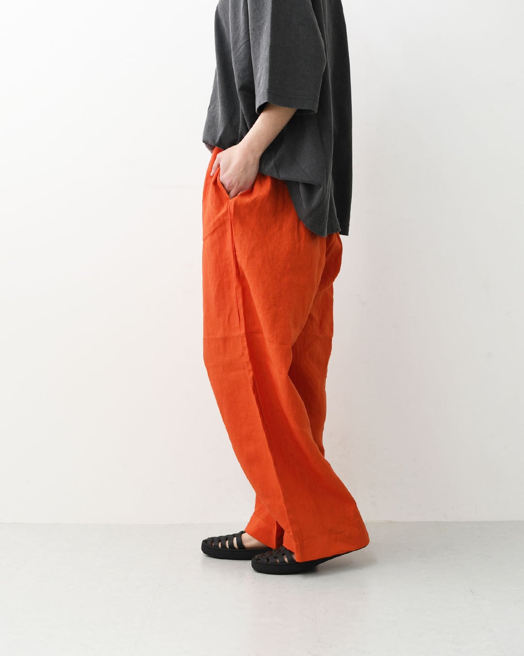 柔らかな肌触りでストレスのない穿き心地を叶え、着るほどに風合いが増していくフレンチリネンを使用しています。気温の高くなる季節にも快適に着用できる一本です。