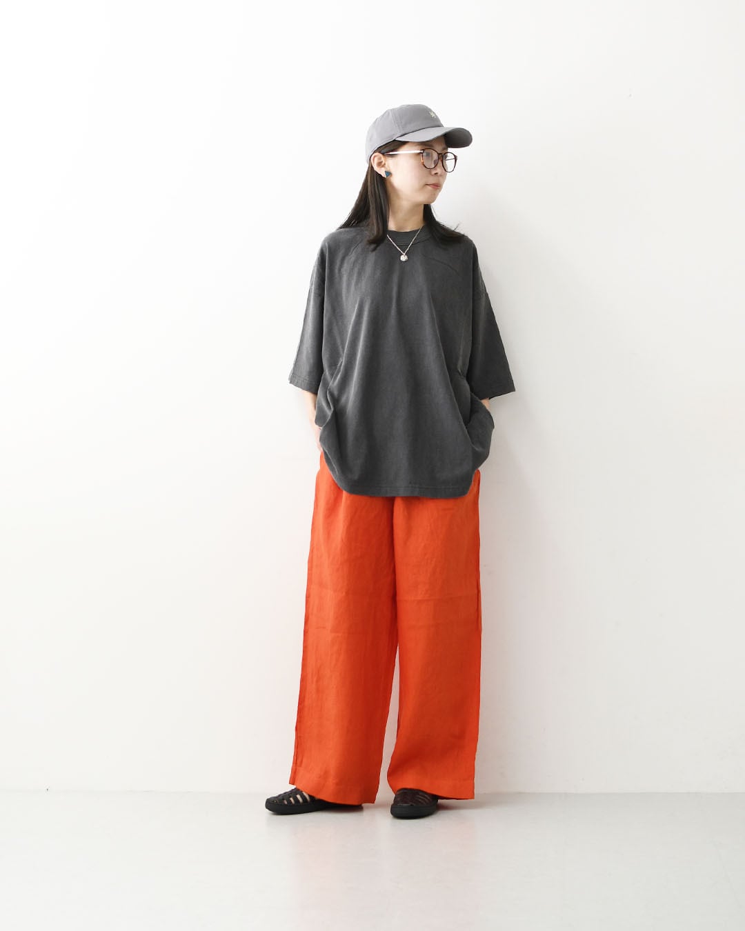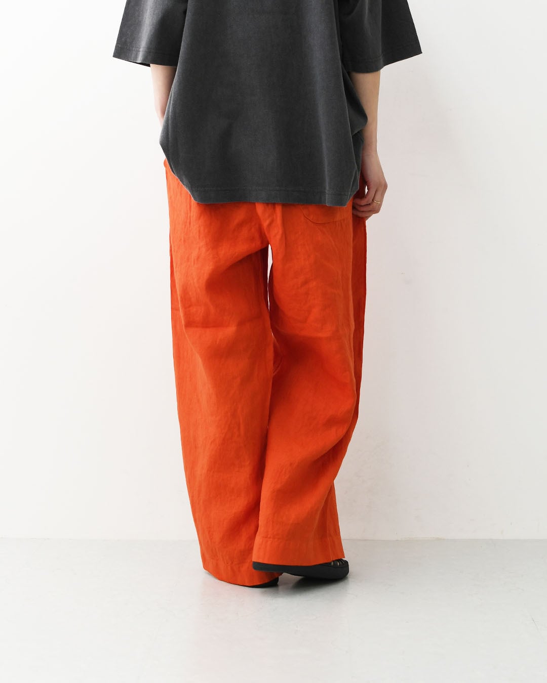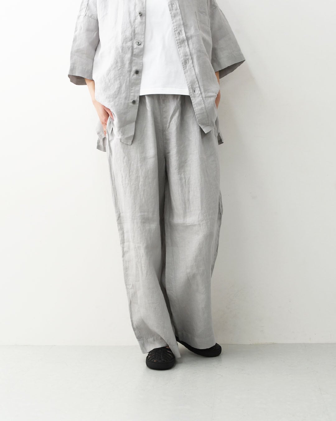 柔らかな肌触りでストレスのない穿き心地を叶え、着るほどに風合いが増していくフレンチリネンを使用しています。気温の高くなる季節にも快適に着用できる一本です。