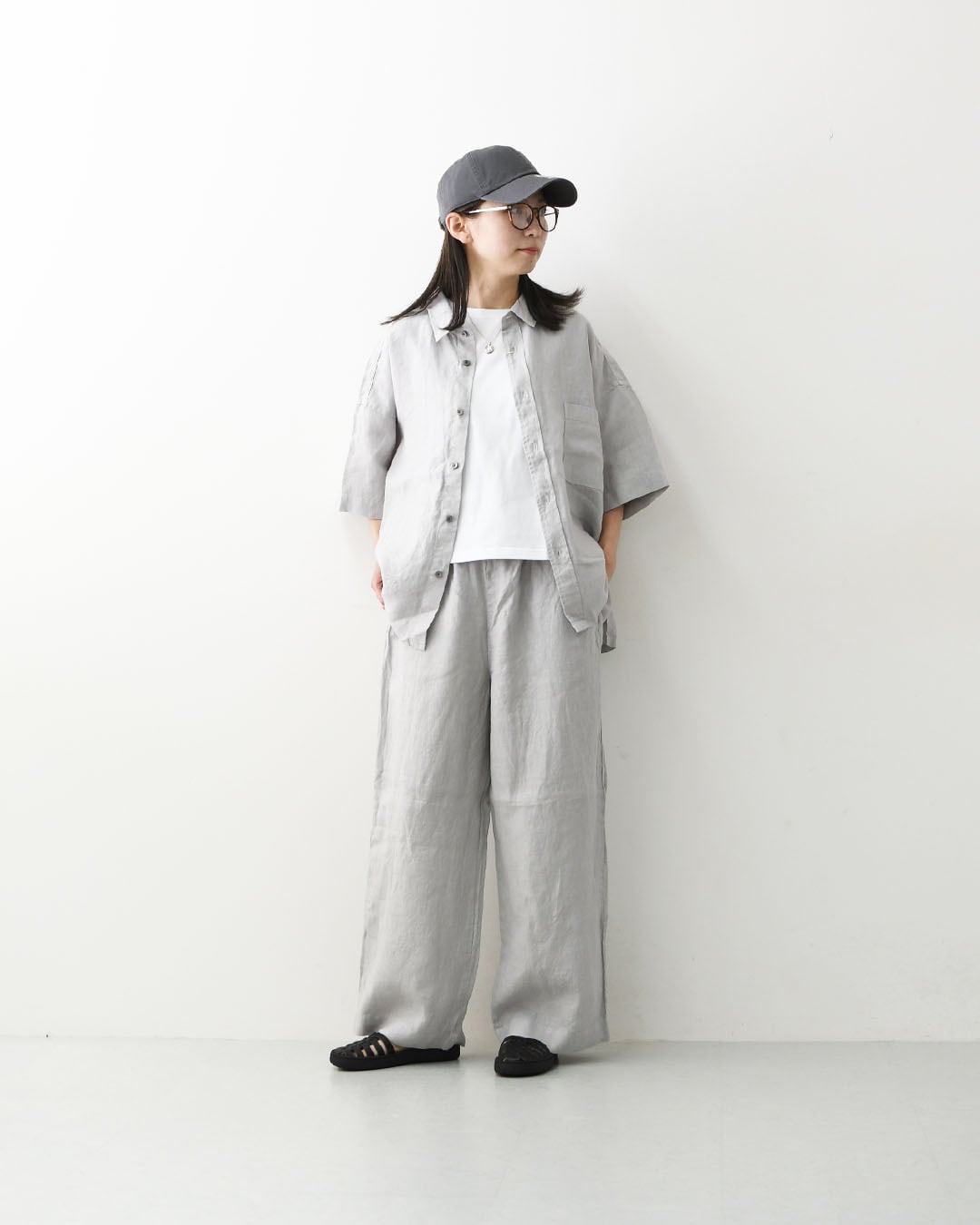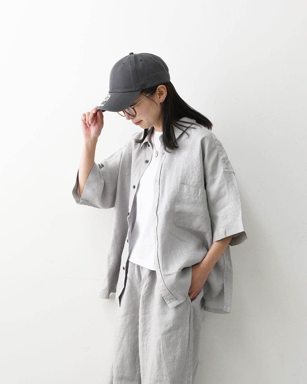 一枚でさらりと着るのはもちろん、軽い羽織りとしても活躍。同素材のボトムとのセットアップスタイルもおすすめです。
