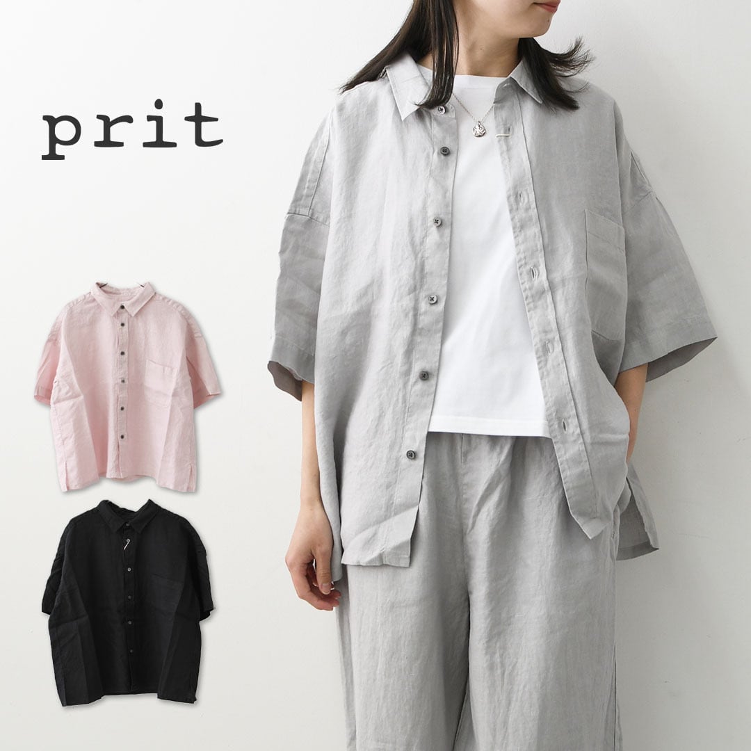 prit [プリット] 40/1フレンチリネン5分袖レギュラーカラーワイドシャツ [P82611] ・半袖シャツ・リネンシャツ・ワイドシャツ・5部袖シャツ・オーバーサイズ・ゆったりサイズ・LADY'S [2026SS]