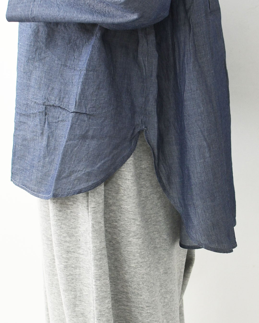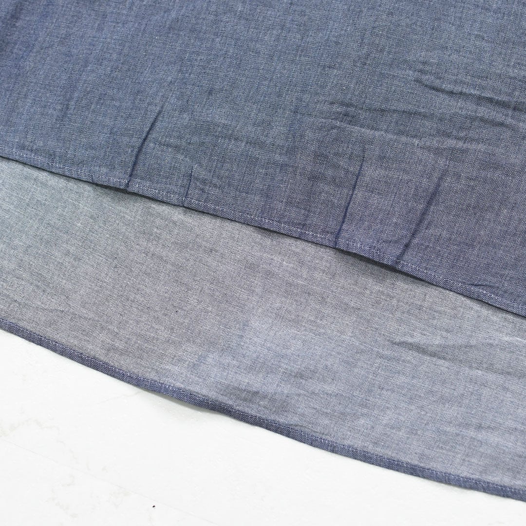 薄手のシアーデニム素材を使用し、見た目以上にやわらかく、さらっとした着心地で春夏シーズンにぴったりの一枚です。