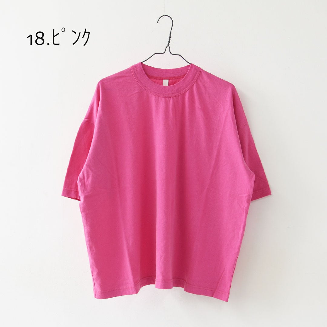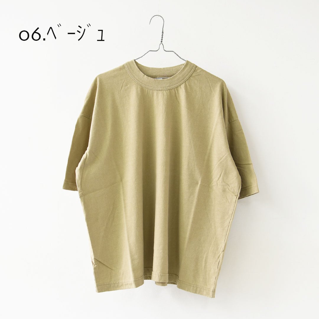 40/1引き揃え天竺ヴィンテージ加工5分袖クルーネックワイドTシャツ [P92617] LADY'S