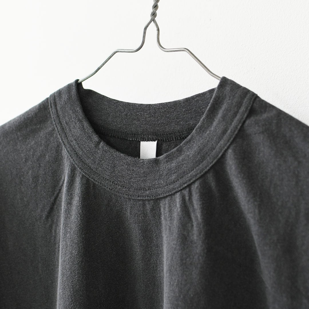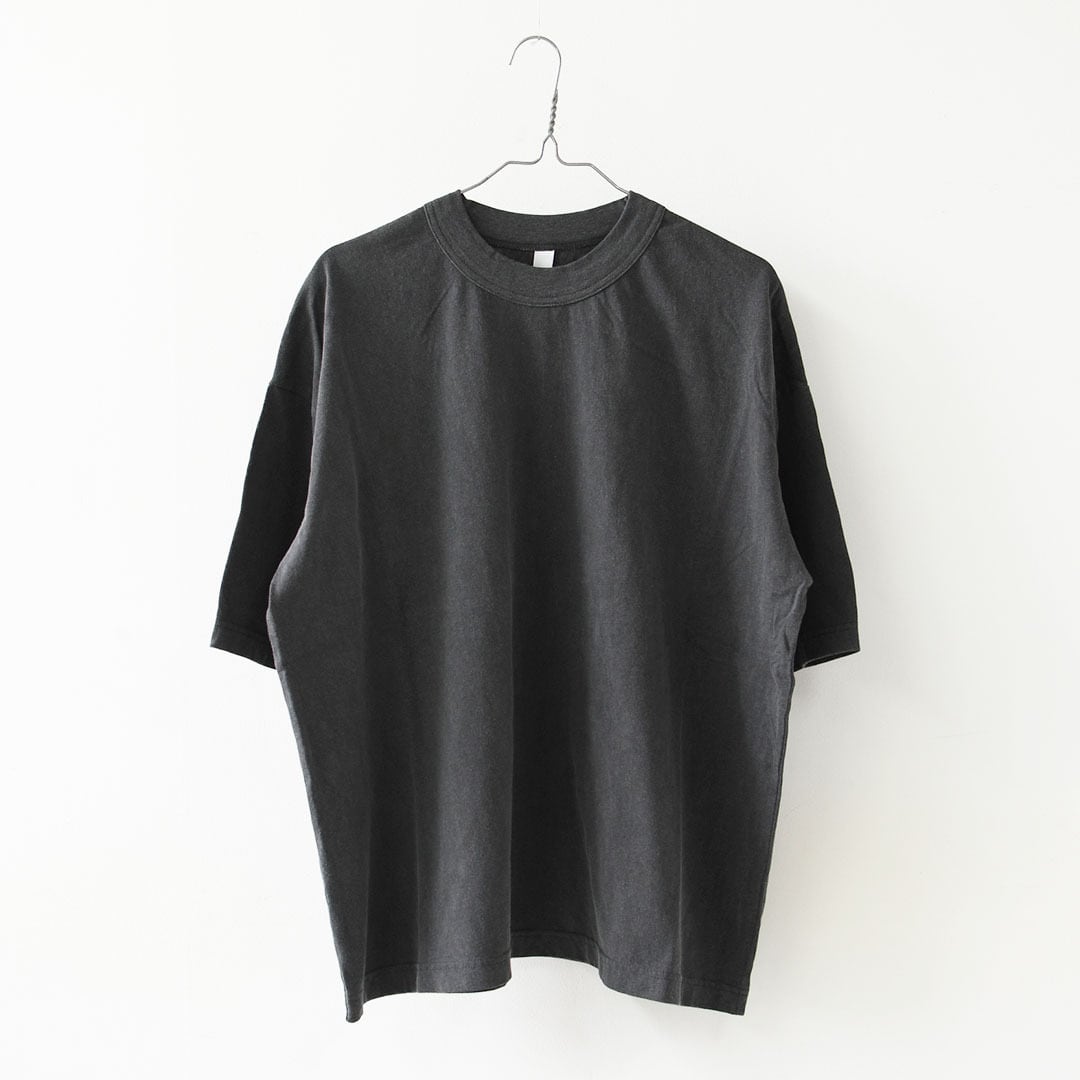 40/1コットンの引き揃え天竺を使用した、さらりとした肌触りと程よい厚みが魅力のワイドTシャツ。