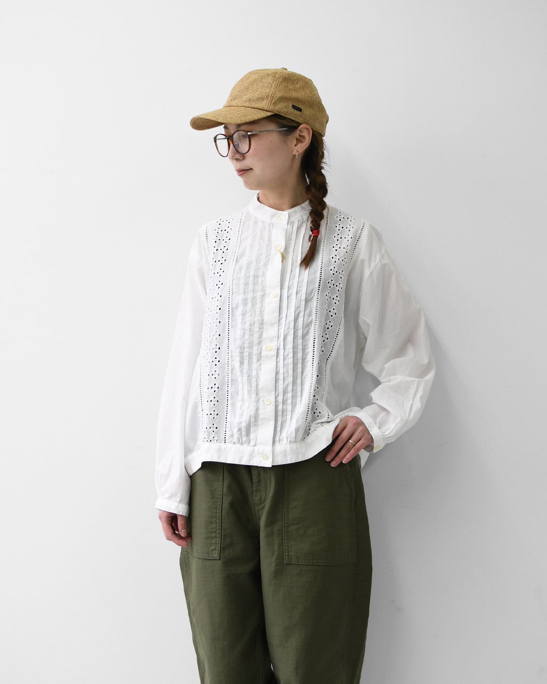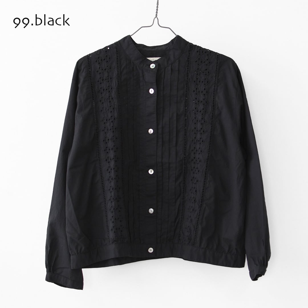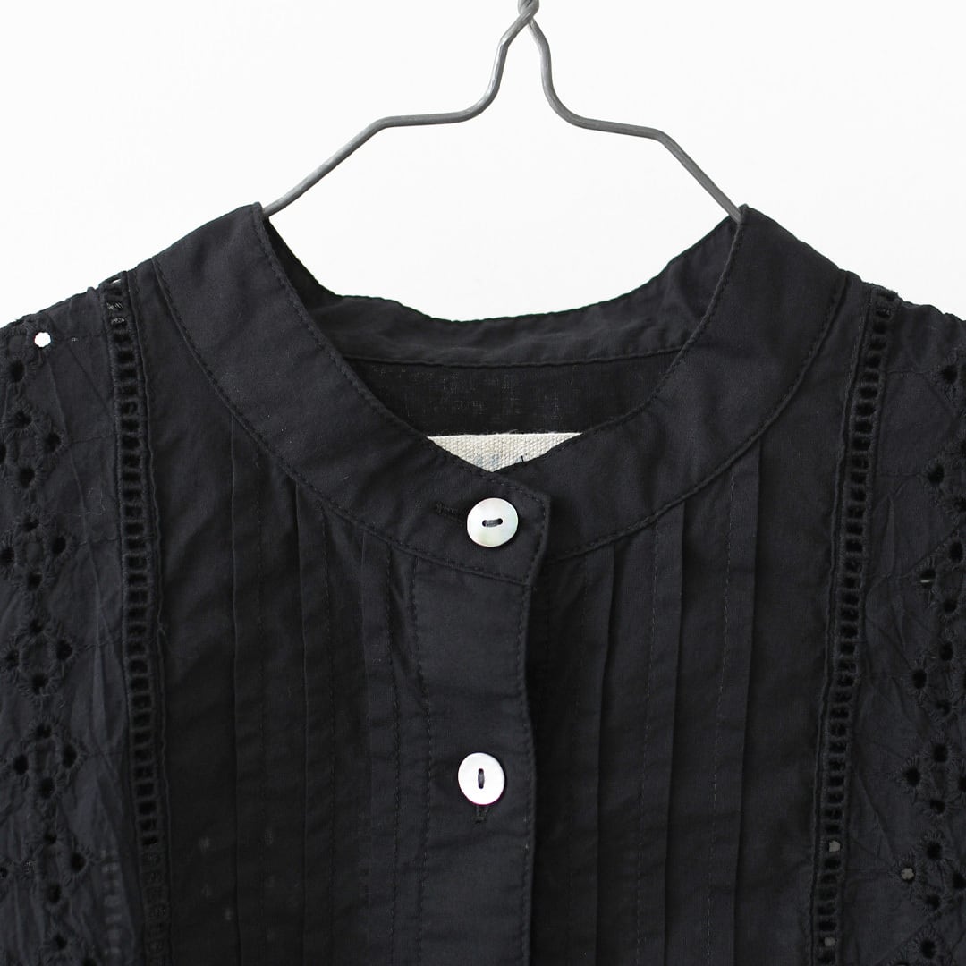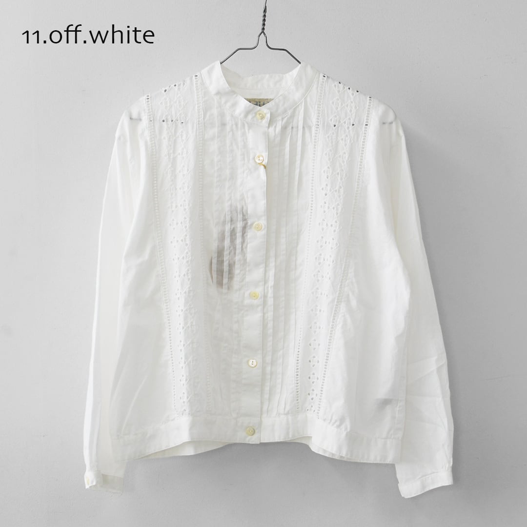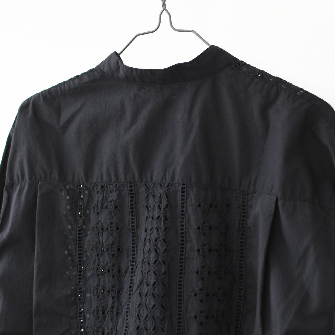 やさしい風合いの60ローン生地に、ヴィンテージライクなエンブロイダリーレースを重ねた一着。
