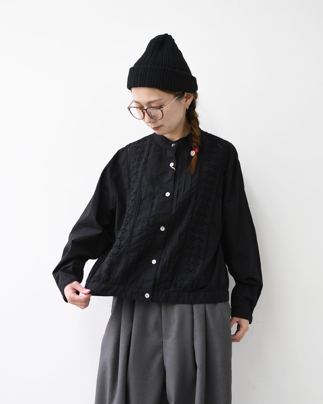 ほんのりとした透け感があるので、インナーとの組み合わせも自然に楽しめます。