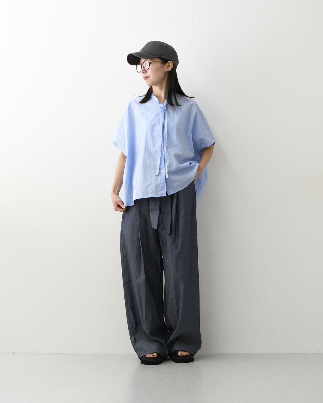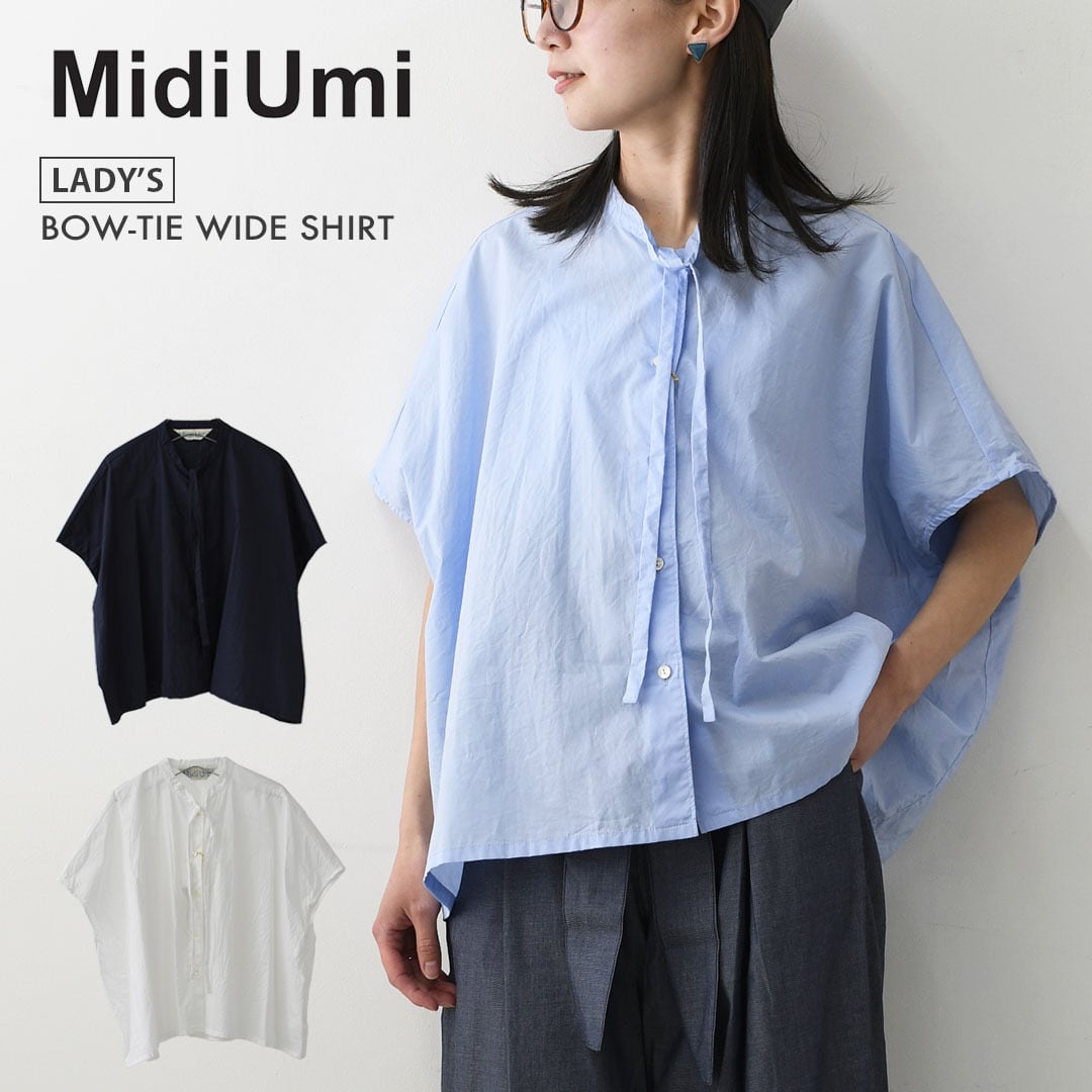 MIDIUMI [ミディウミ] BOW-TIE WIDE SHIRT [2-730184] ボウタイ ワイドシャツ・半袖シャツ・ワイドシャツ・オーバーサイズシャツ・無地・シンプル・リラックスシルエット・LADY'S [2026SS]