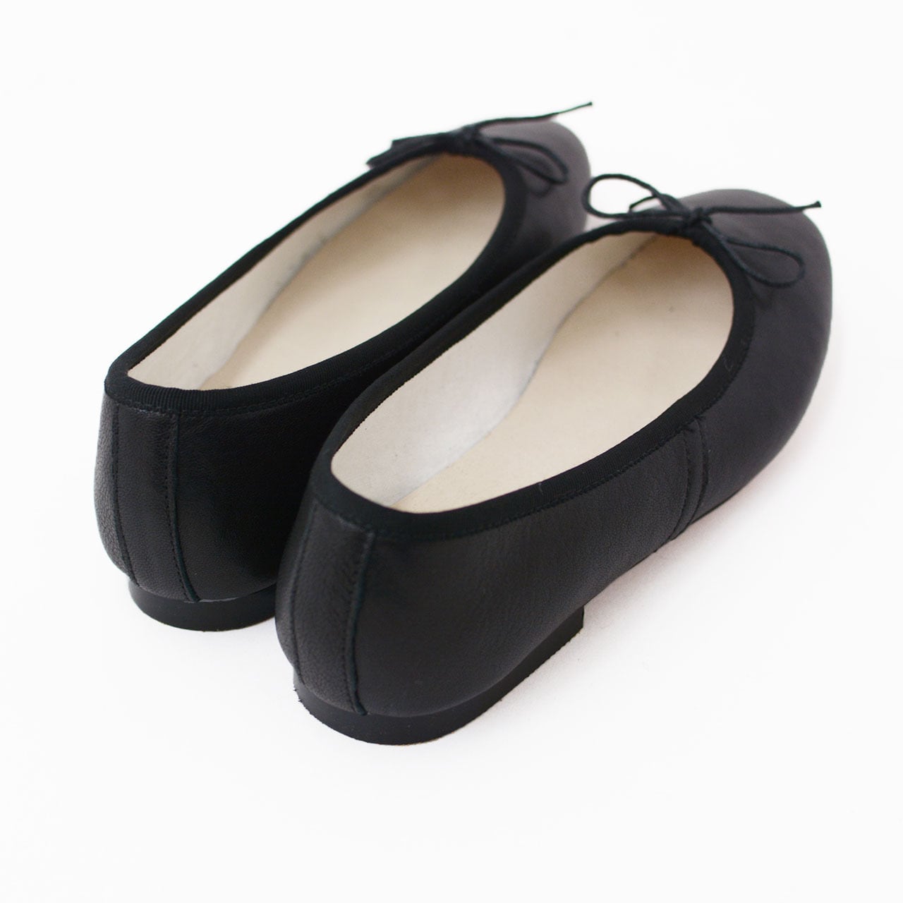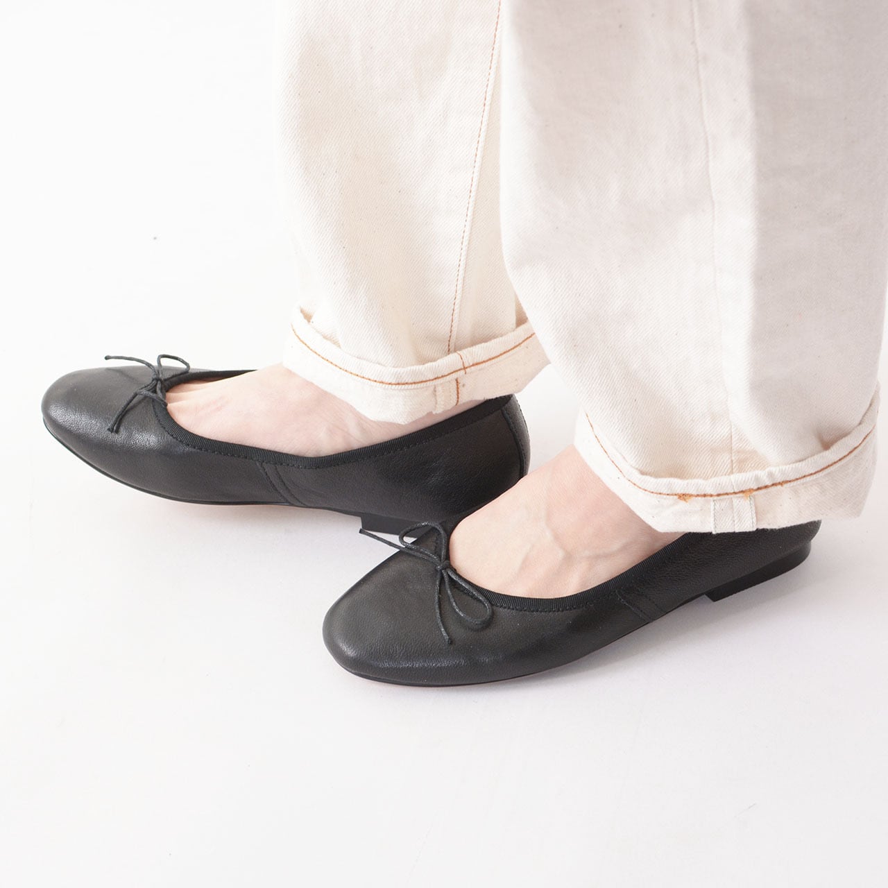 アッパー部分に施されたリボンがフェミニンなアクセントになったバレエシューズ。